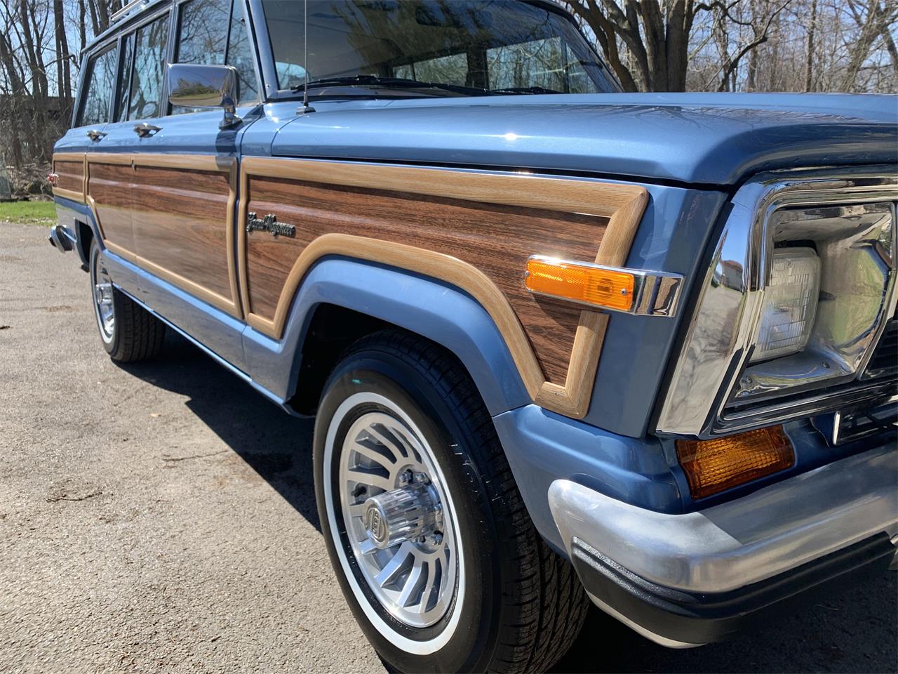 The sand color interior is likewise beautiful, as the pictures portray. All the floor carpeting is new, along with the carpet in the cargo area sides and interior tailgate. Just the carpeting on the seat backs and lower 4 door side panels are original and of course those areas don't receive much wear, ever. There are also new custom Grand Wagoneer floor mats to protect the fresh carpet. The leather portion of the seats have been re-coated and all the seats have been fitted with new fabric inserts. The dashboard has also been re-coated, along with the steering wheel. Above it all, we have installed a new headliner. The power mirrors, power windows, power seats, AM//FM CD stereo along with the heat and air conditioning, are all in working order. Just the bothersome cruise control and the exterior temperature/ compass heading readouts are not function and because of their poor factory design, possibly never did.