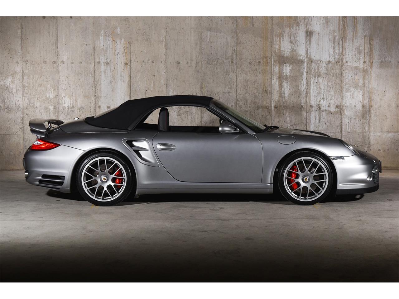2011 Porsche 911 Turbo Cabriolet. Finished In The Alluring Carrera GT-Derived GT Silver. Out Of The 997.2 Turbo's Model Years From 2010 To 2013, Only 1,488 N.A-Market Examples Were Produced, With Only 488 Having Been Specified With A Manual - The 997.2 Turbo Is The Last Of The Manual 911 Turbos - Only 54 U.S Market Cabriolets Were Optioned With A Manual For The 2011 Model Year With This Unit Being Only 1 Of 3 N.A-Market Manual Cabriolets To Be Featured in GT Silver With An Interior Shown In Black Full Leather - Optioned With Coved Equipment And Tasteful Specficications Such As The Sport Chrono Package, Limit Slip Rear Different Lock, An Alcantara Wrapped Steering-Wheel, Red-Stitching, A Sport Shifter, Cooled Front Seats, And The RS Spyder Wheels Completed In Silver
