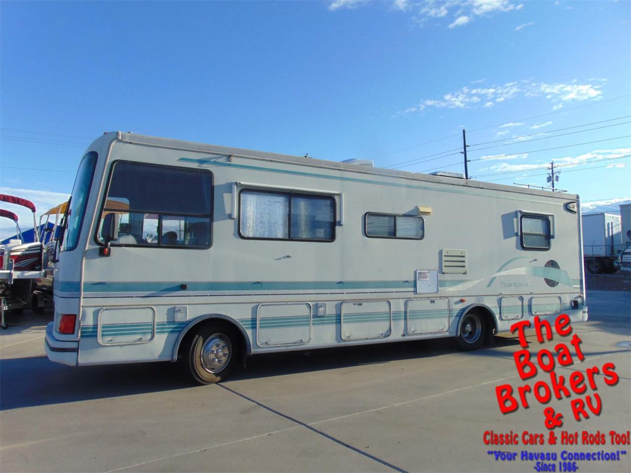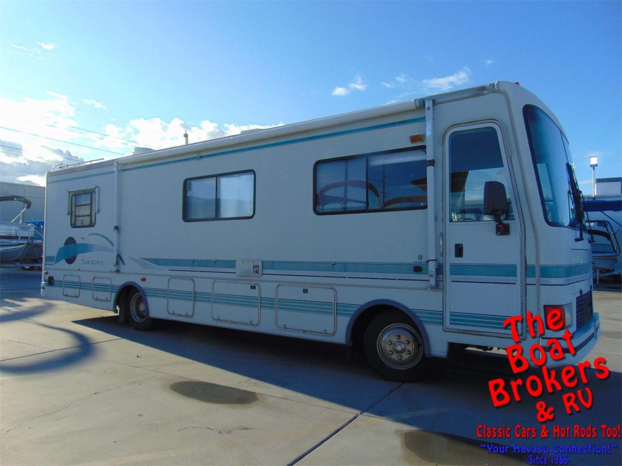Cummins diesel motor Backup camera Large awning Walk around queen bed Class A 1995 COACHMEN SANTRA 32' MOTORHOME Classic Class A Diesel Pusher Motorhome.