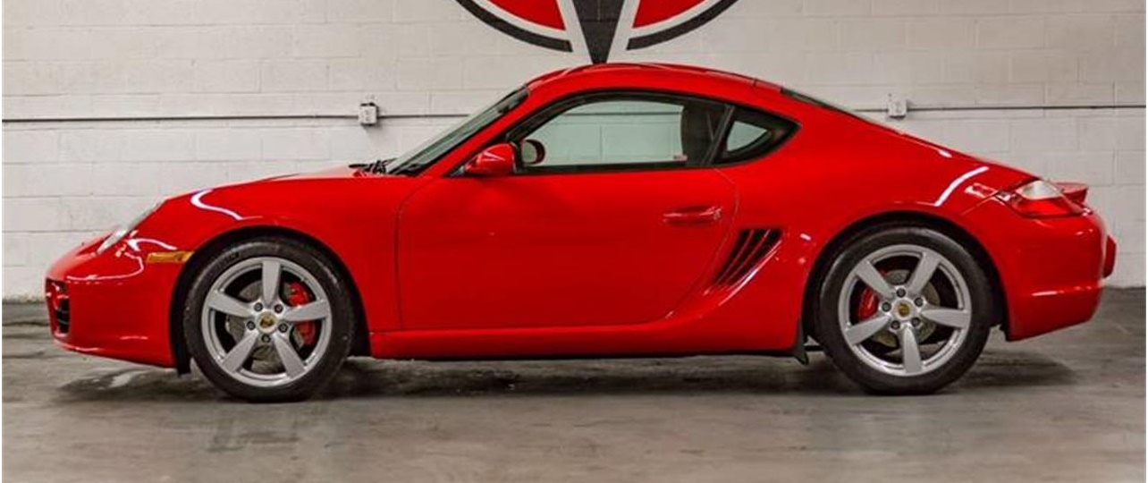 2007 PORSCHE CAYMAN S 2DR COUPE.Guards Red and Black interior.