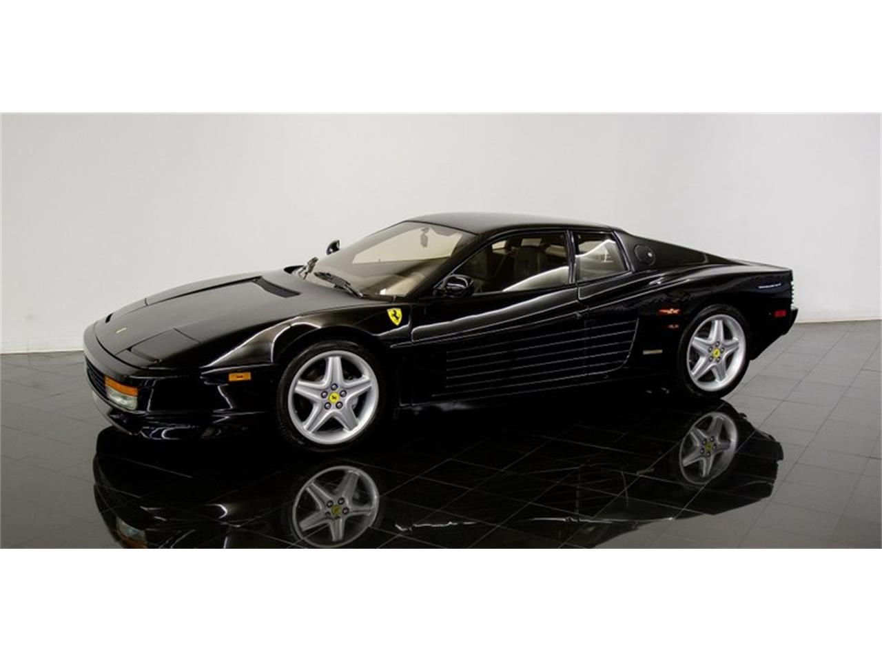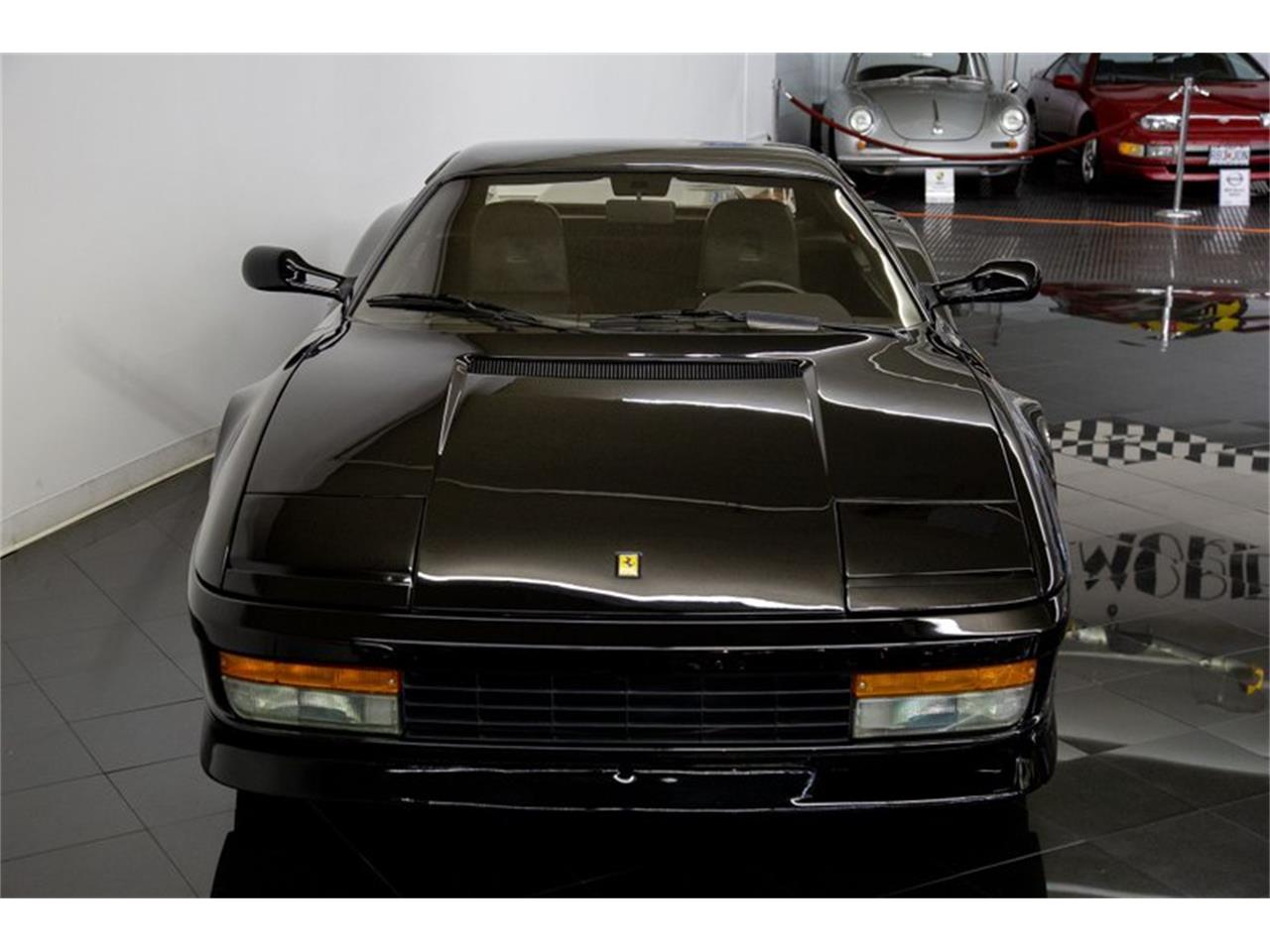 This gorgeous 1988 Ferrari Testarossa example is finished in desirable Nero with soft Black Leather interior. The model seen here is powered by its original Tipo F113A 4.9L DOHC Flat 12-cylinder engine that produces 390 total horsepower and a gate-shifted 5-speed manual transmission. Features include climate-controlled air conditioning, power windows, and mirrors, adjustable seats, with upgraded 18" Speedline 512TR aluminum wheels with Michelin Pilot SX tires, Ferrari fender shields, and Pioneer AM/FM/CD sound system!