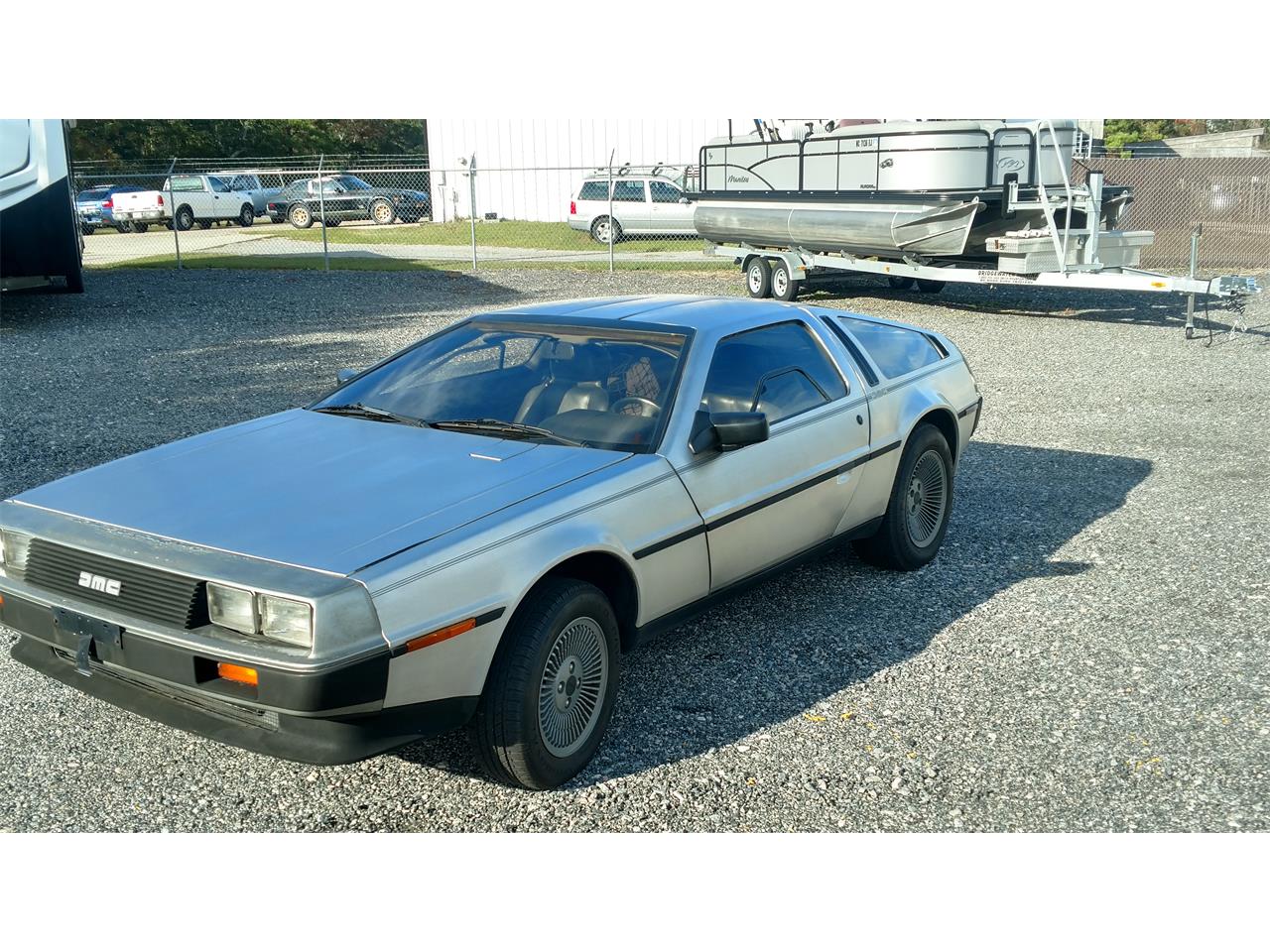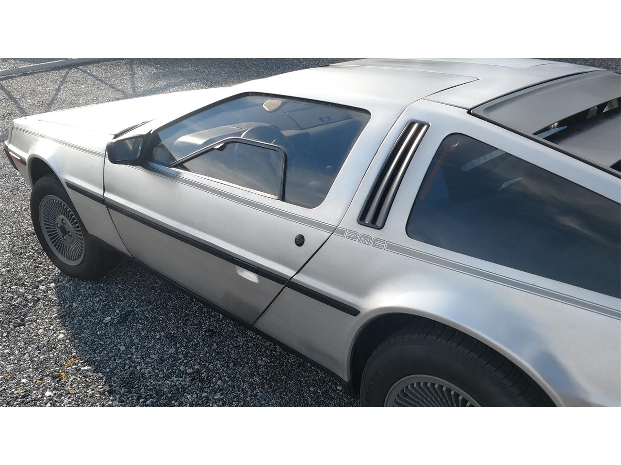 1981 DeLorean DMC-12 5 speed manual, grey interior w black leather seats/trim. Mechanical & Body in excellent condition. Grooved Hood with Gas Filler Cap, Power Windows, A/C, OEM AM/ FM/Cassette Radio, original double side striping with DMC logo.