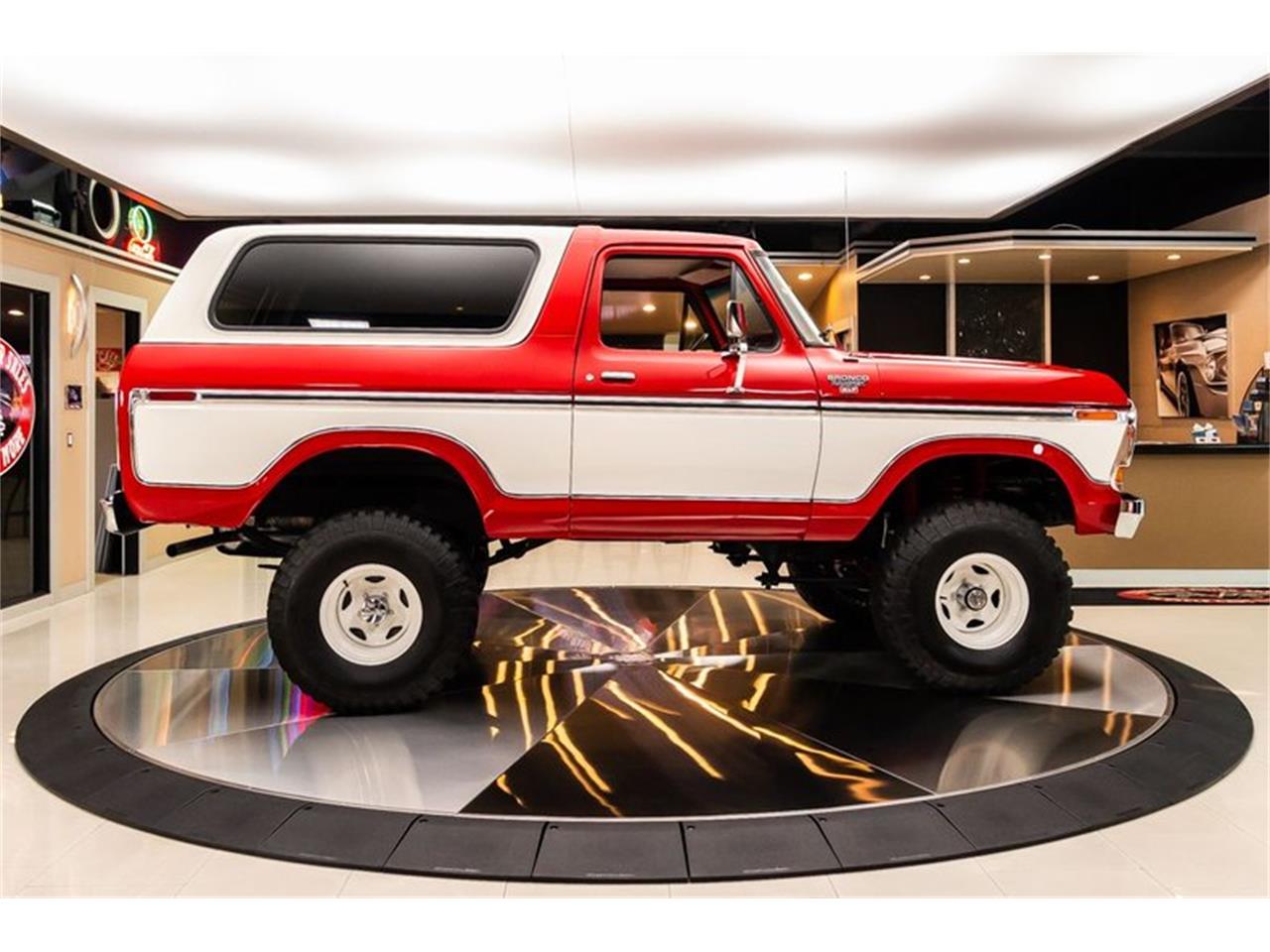 1979 Ford Bronco XLT 4X4! This Bronco has a beautiful body with a glossy Red and White Paint finish, matching Red and White Interior, Removable Hard Top with Privacy Window Tint, White Wheels, 35'' Tires, along with polished components all over! Under the hood sits a Ford 351ci Modified V8 Engine with Holley Sniper Electronic Fuel Injection. Power is put to the pavement through a Ford C6 3-Speed Automatic Transmission along with a Ford 9'' Rear End and a Dana 44 Front Differential with Manual Locking Hubs. Vintage-Air Air Conditioning, Power Brakes (front disc), and Power Steering on this Ford.