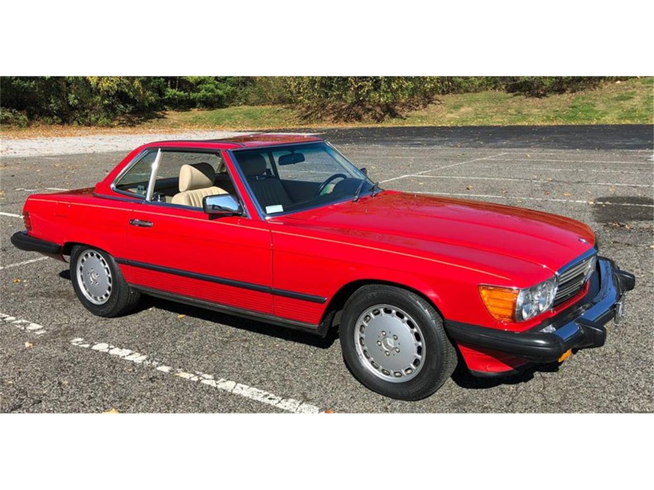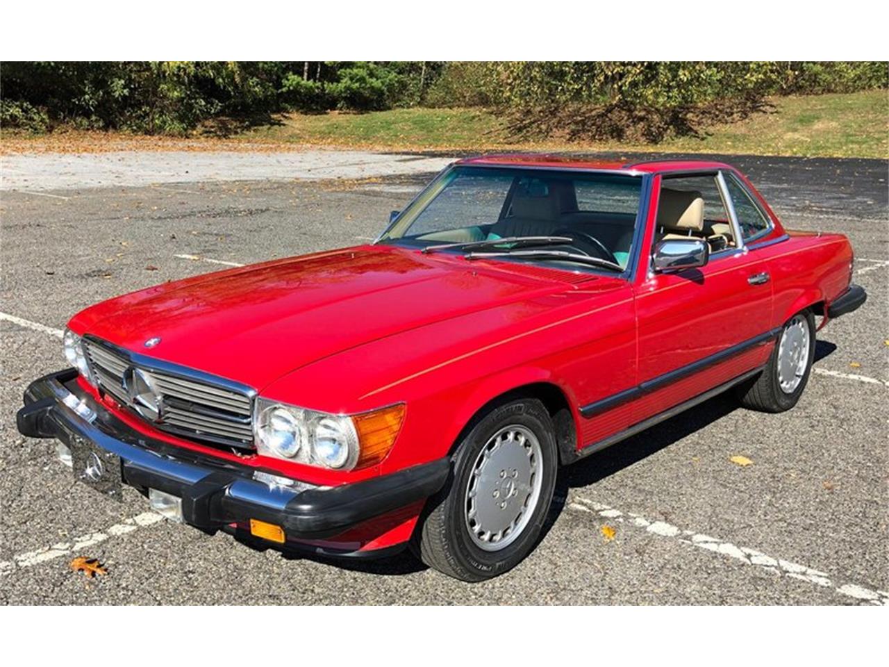 1989 Mercedes 560SL Convertible, only 36,000 miles, garaged and meticulously maintained, Signal Red with perfect Beige leather, original keys, books and records, absolutely like new!