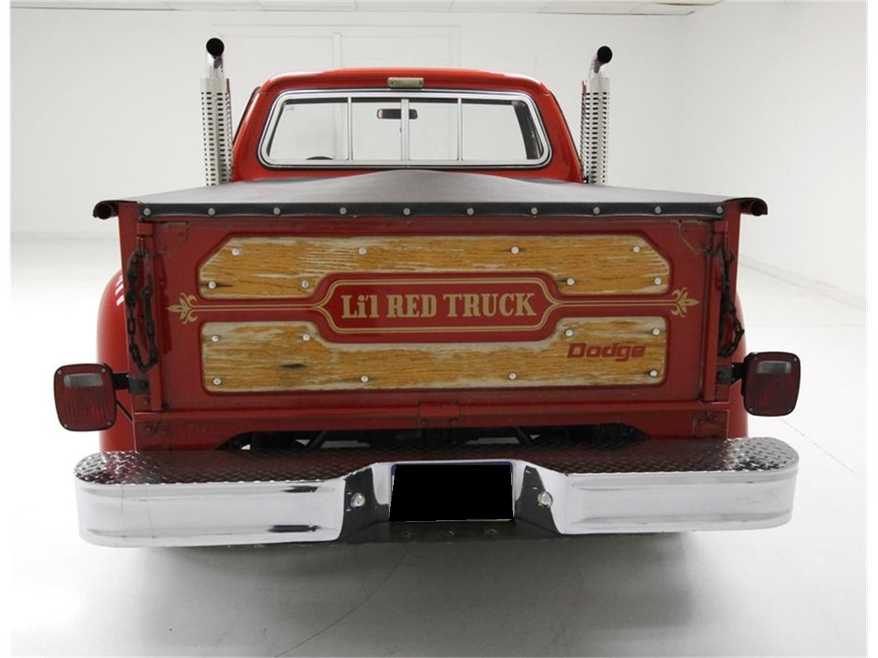 Exterior: Bathed in the factory original Medium Canyon Red paint, no rust, no dents. Gold lettering on the doors, gold pin striping throughout, and solid wood panels tucked into everywhere but the hood, doors, and on the fenders, and are looking very original. Adding to the mystique are dual exhaust stacks which work their way through the step sides and tower to the sky next to the cab. These are nice and shiny and are wrapped in a protective perforated metal chromed covering. Bumpers and trim are nicely chromed and 15-inch Cragar polished chromed wheels are on all 4 corners. Interior: All nicely preserved and very clean, black vinyl door panels with some wood applique, and a cloth black bench in good condition. Dash is all original and very clean as is steering wheel, black carpet with stamped RAM in red rubber molded mats, and red sprayed metal headliner are seen. Drivetrain: A flip of the hood and we shake hands with an original mill, that is clean and in its 360ci V8 format. A Thermoquad 4-barrel carbuertor feeds this engine and an A727 Torqueflite 3-speed automatic transmission is on back. In the way back is a Dana 9-1/4-inch rear with 3.55 gears.