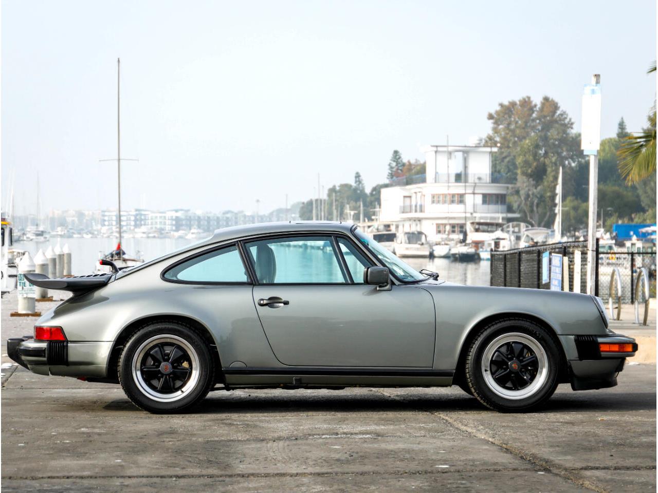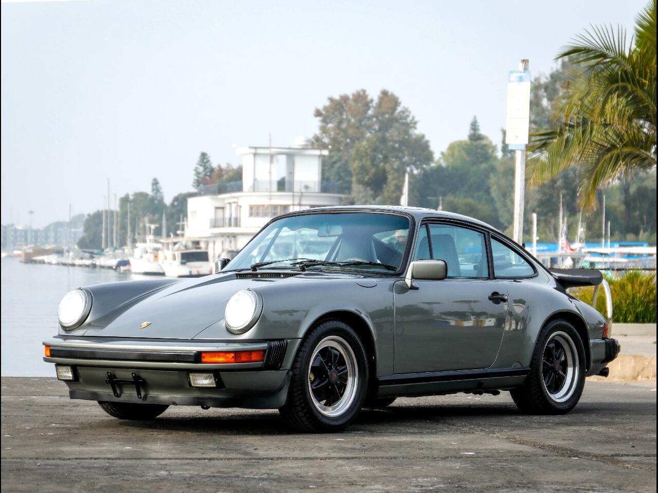 1987 Porsche 911 G50 Carrera Coupe in Granite Green (L699) with Green Grey (LB) leather seats. 43634 miles. Factory equipped with Limited Slip Differential Sport Shocks Power Seats Front and Rear Spoiler etc. Fantastic rust and accident free body with excellent paint all around. All stickers in place including option code sticker under the hood. The interior is in fantastic condition with un re-dyed seats un-cracked dash great roof liner door panels and carpets.