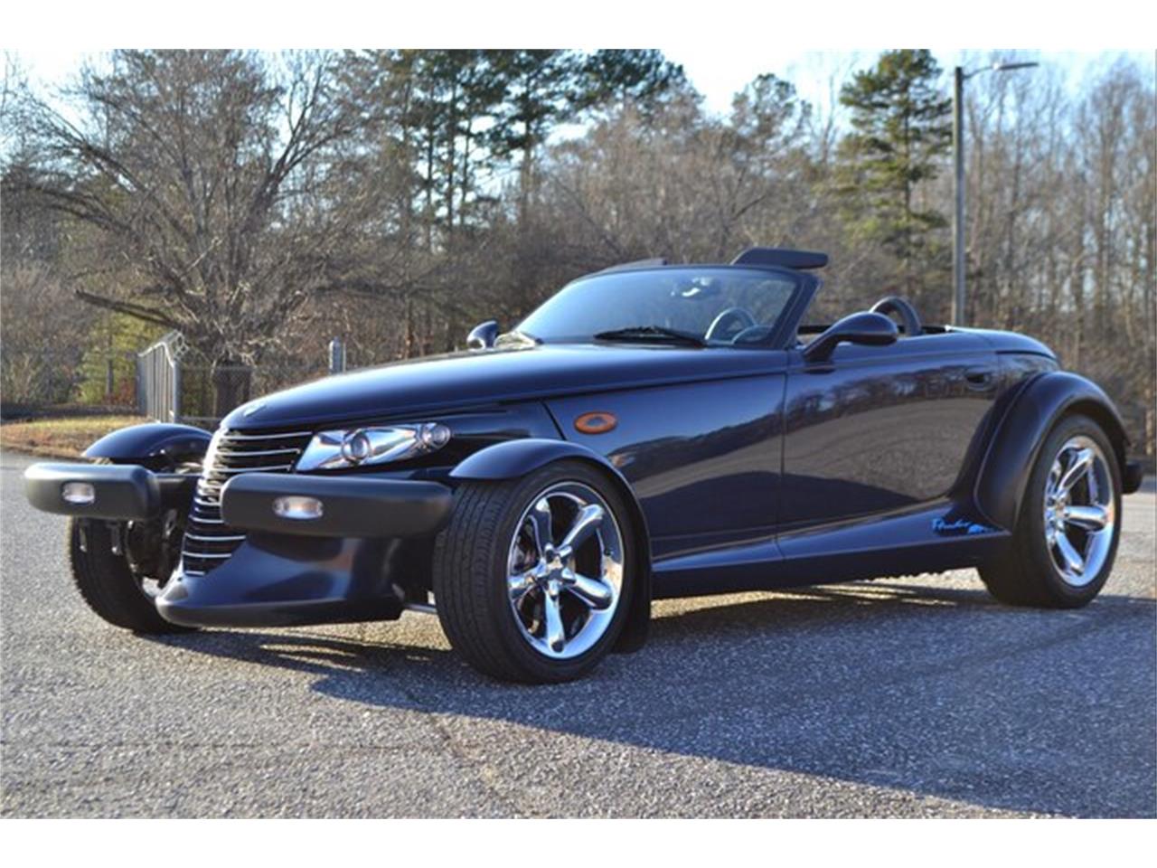 This 2001 Chrysler Prowler is a Mulholland Edition finished in Midnight Blue Pearl over black with a blue soft top.