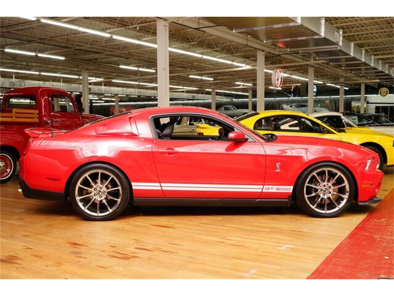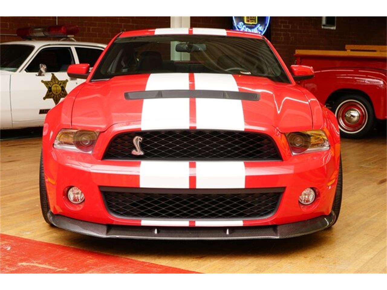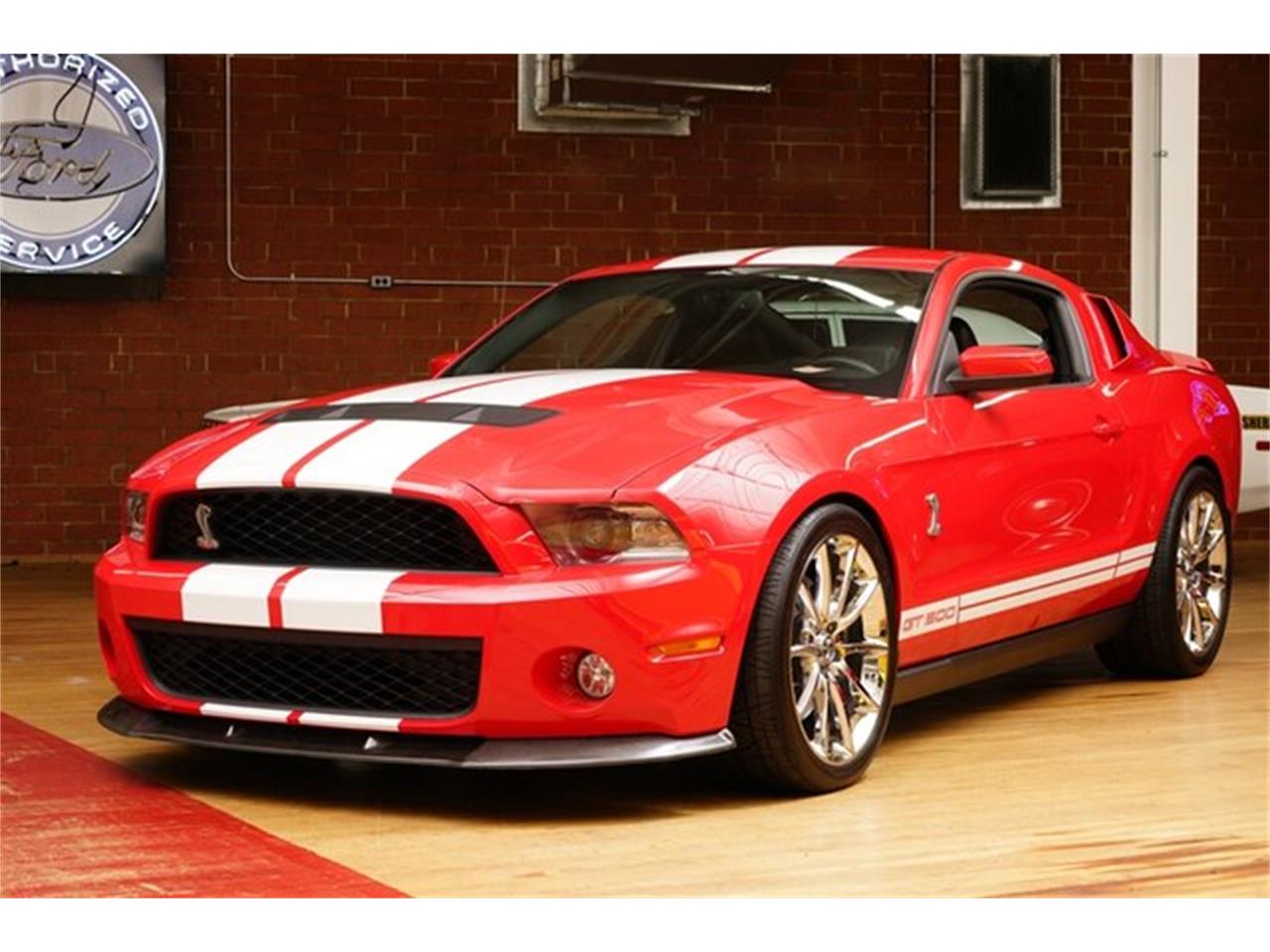 This 2010 Mustang GT500 is presented in Torch red exterior with Charcol Black interior with white accents.