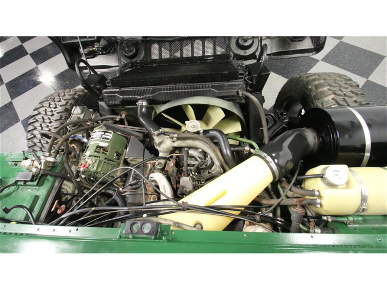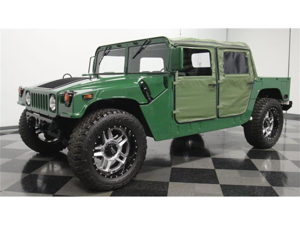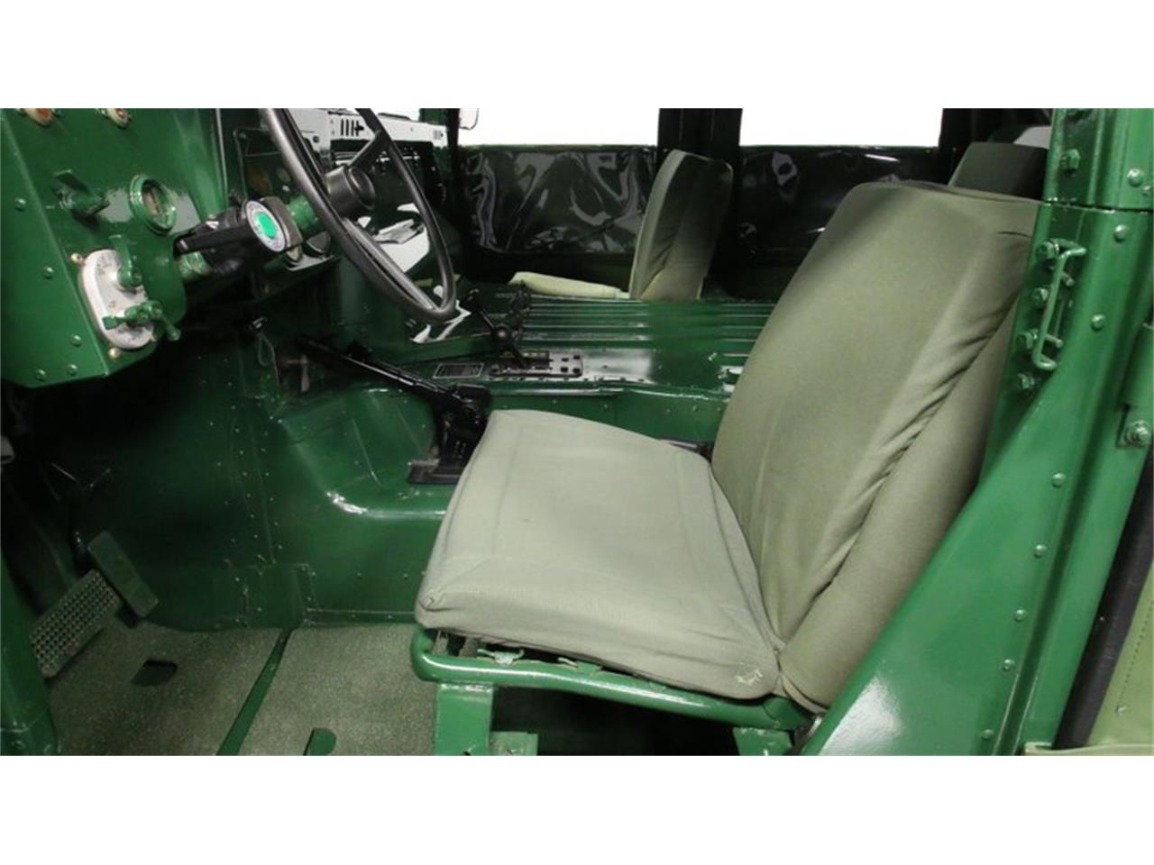 The paint is in great shape, with a glossy shine and consistent pigmentation and the added contrasting black paint over the hood vents and surrounding the headlights confers just the right touch of customization. This Humvee is mechanically well-equipped for rugged dependable duty in any conditions you might find yourself. Its fuel injected 6.2 liter engine fires right up and runs smoothly, teaming with a 3 speed automatic transmission that's shifting in top form. With its four-wheel drive accompanied by a two-speed locking transfer and sturdy independent suspensions at both ends, there really isn't much that can stop this Humvee from moving forward, something it can actually and ably do while still carrying quite a payload. A 95-gallon fuel tank.