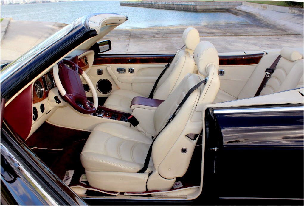 1998 BENTLEY AZURE CONVERTIBLE. Largely influenced by the limited production Mulliner RT series long wheelbase sedans of the era, the appearance package includes: LeMans style front wing vents, stainless headlamp surrounds, 18 chrome alloy wheels, winged B motifs to the headrests and waist rails, chrome instrument bezels, standing winged B mascot with accompanying center molding to the hood, drilled alloy pedals and the very rarely seen optional jeweled fuel filler cap.