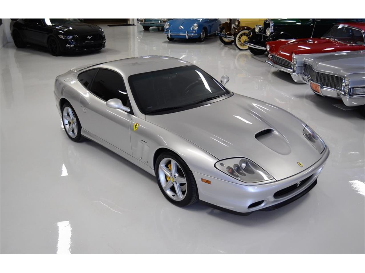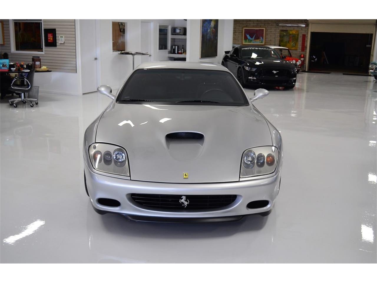 Ferrari 575M featuring the F1 style six speed gearbox and the Fiorano Handling Package and is in nearly showroom new condition. It has been recently serviced, including belts, and is ready to enjoy. Offered here is what is perhaps the ideal drivers Ferrari 575M Maranello. The livery is all original and finished in Gricio Titanio Silver. This is a classic color for the GT model Ferraris. The paint finish is nearly perfect.The paint is beautiful throughout. We love the contrasting yellow calipers that was a custom order with the factory. Inside, the interior is trimmed in Nero black leather and features the Daytona Ferrari sport seats and black carpets. The seats show almost no wear and are soft and supple. We also love the High Power HiFi with the Subwoofer.