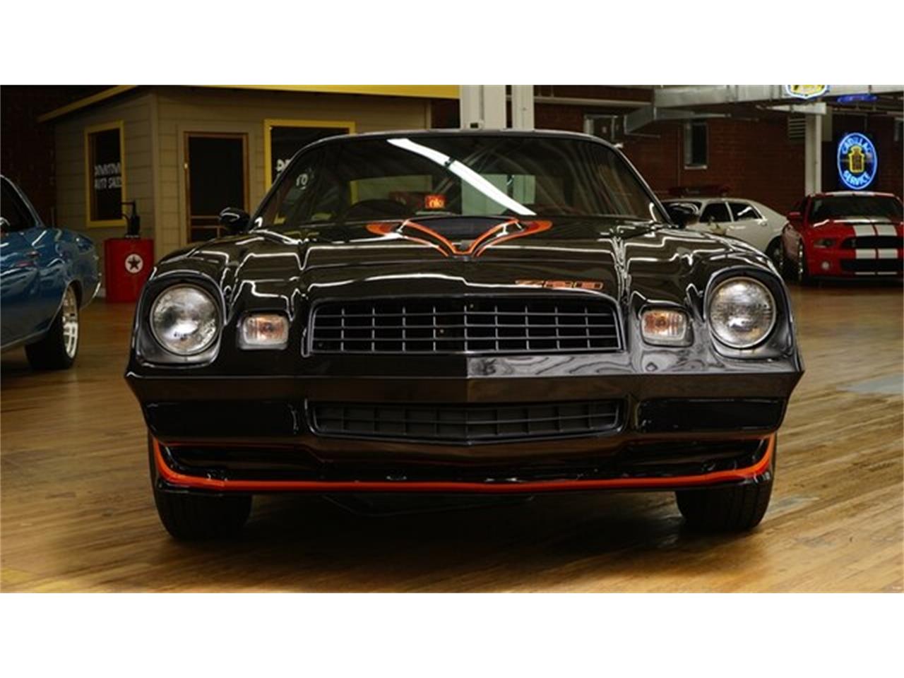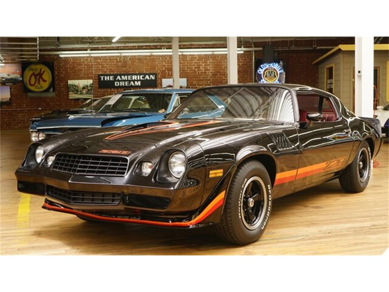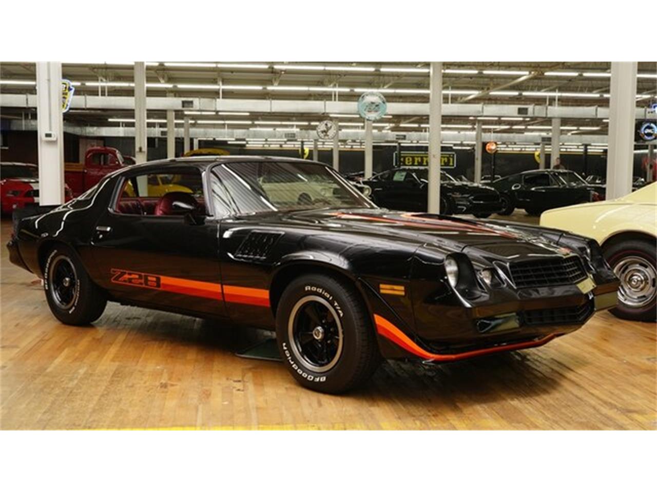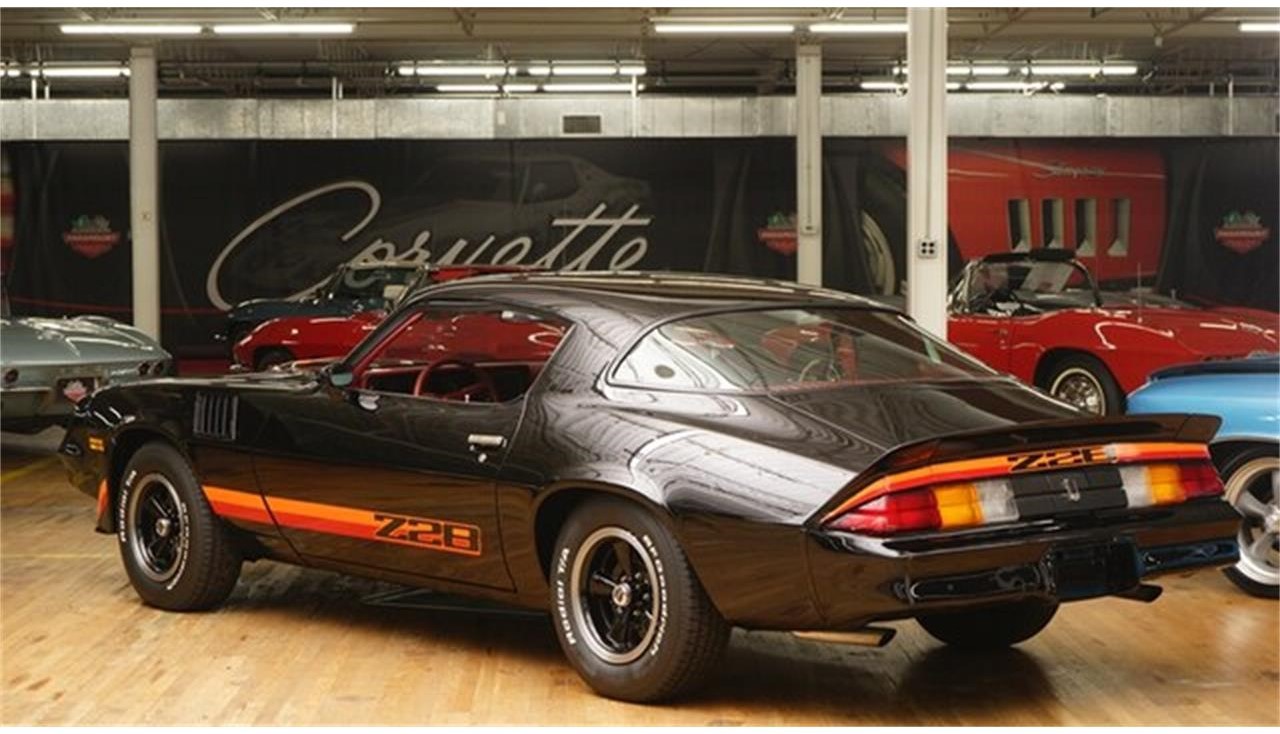 This 1979 Camaro Z28 is presented in a Black exterior with a Carmine Red interior. It has a 350ci V8 that produced 175hp 400rpms when it was new. the Borg Warner 4 speed manual transmission with a 3.73 rear end gear with an 11inch clutch diameter. It has 11 inch vented cast iron front brakes with vacuum assist. It has been completely restored back to factory specifications.