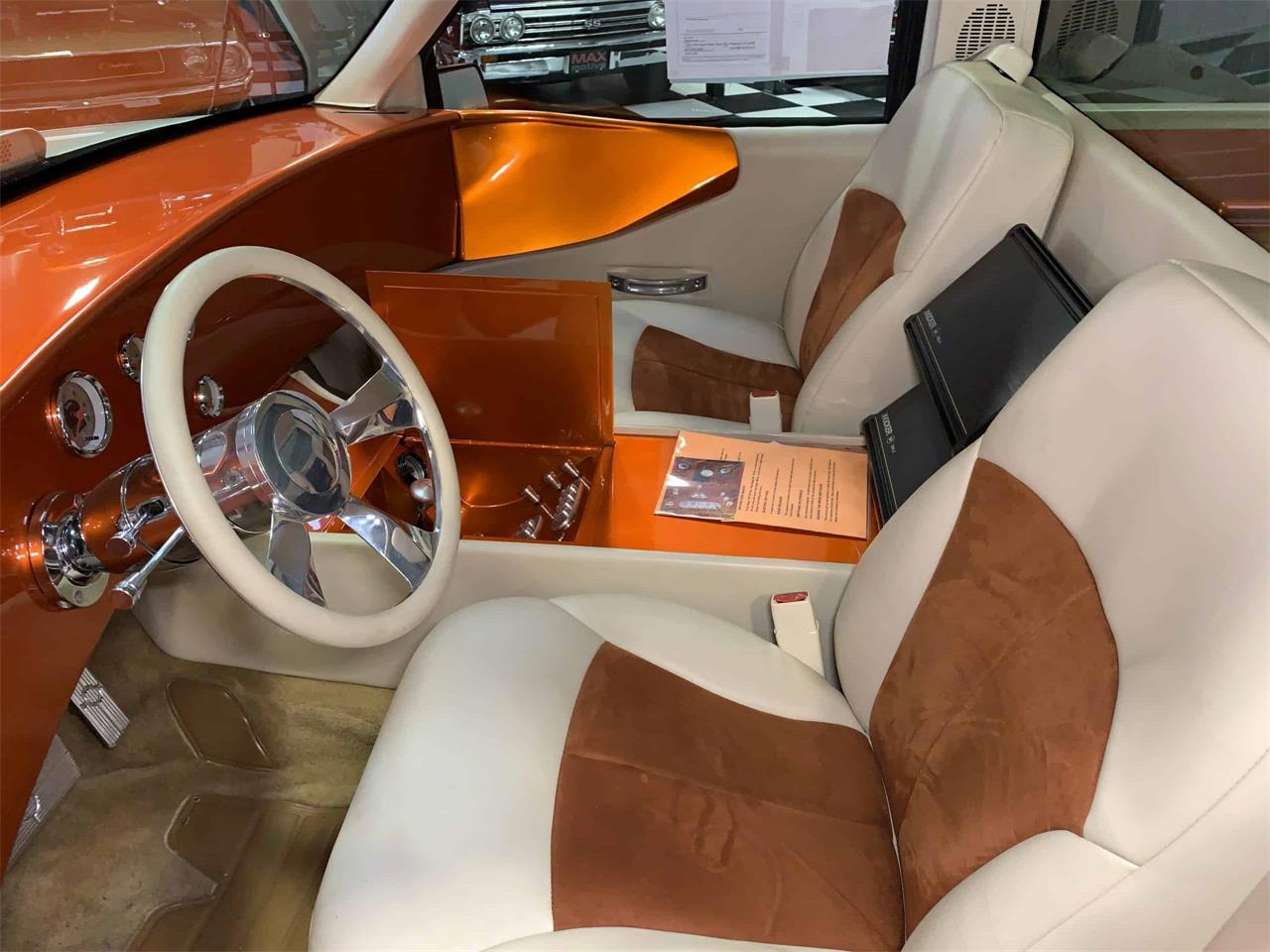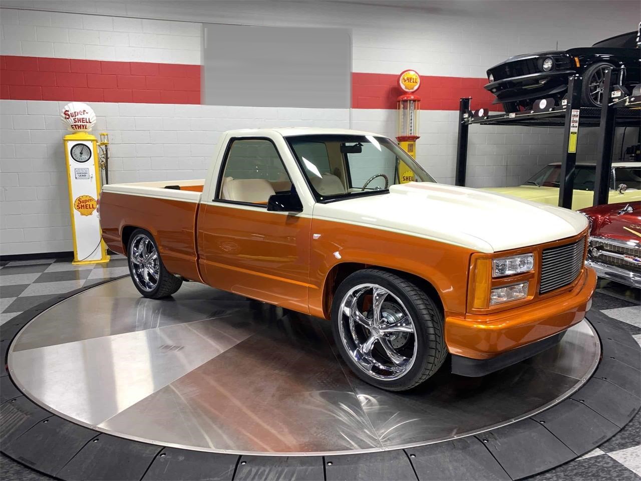 A striking PPG Candy Orange Metallic finish sets off the body with a contrasting Cream color and hand painted lime green pinstriping. The air ride system can lower the chassis right to the ground for an extreme custom display mode. Huge 22 inch chrome 5 spoke wheels give off plenty of flash when they re rotating or just standing still.