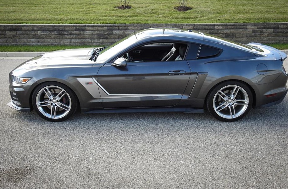 2016 Ford Mustang Roush Stage 3 for sale.ed in a dark grey metallic paint job which is so glossy that the car constantly looks wet at all times