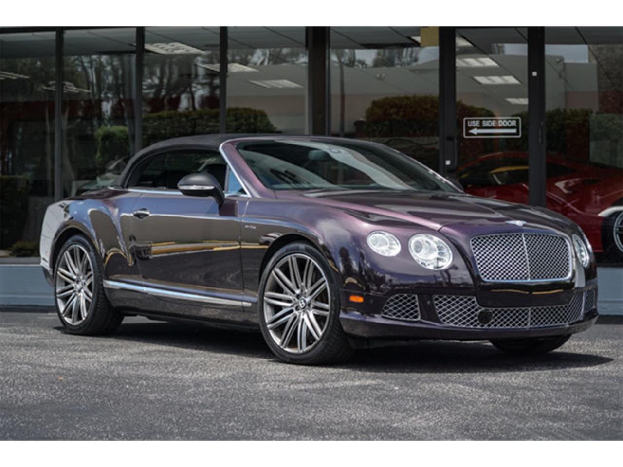 2014 BENTLEY CONTINENTAL GT SPEED CONVERTIBLE FINISED IN DAMSON METALLIC OVER BELUGA LEATHER INTERIOR WITH DARK TINT ALUMINUM TRIM.