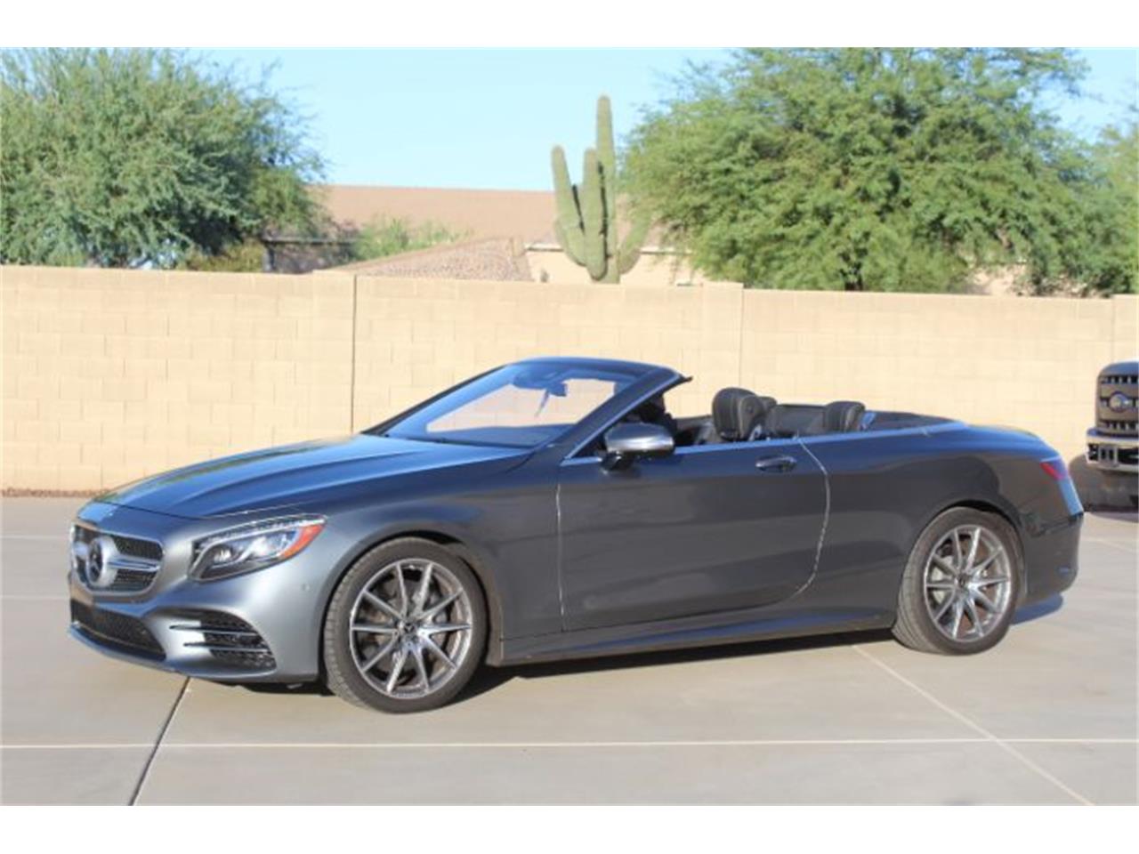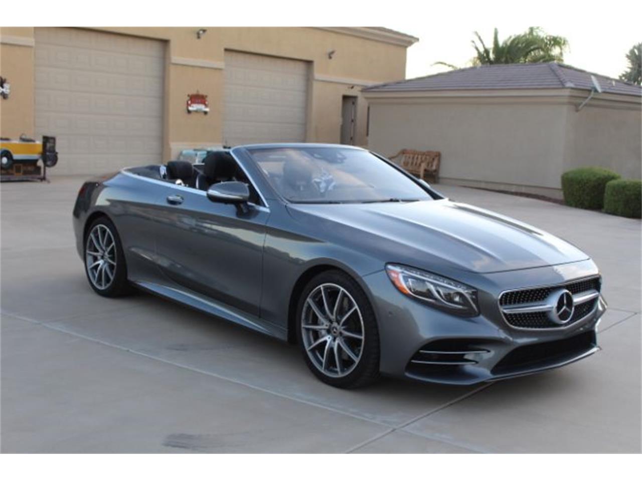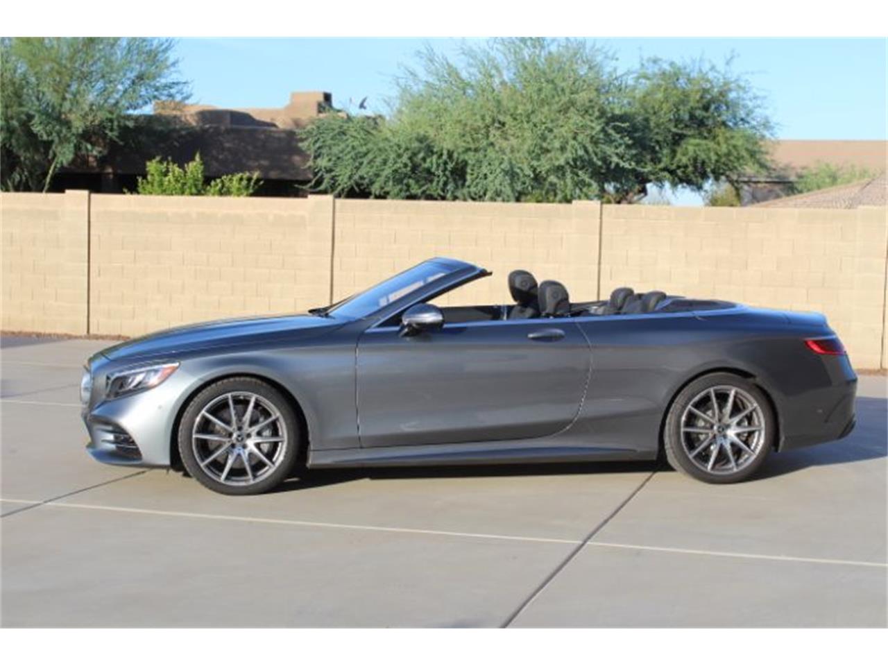 2019 Mercedes S560 Convertible with just 4,600 miles, and loaded with 1st class options. The active park assist as well as the active Distronic assist is luxury at its best. The Active Distance Assist DISTRONIC takes a lot of work away from you and automatically regulates the distance from the vehicle in front. The exterior paint scheme is Selenite Grey Metallic and interior is Black exclusive Napa leather. The options offered in this car include front cooled and heated seats, neck warmer, heated arm rest, heated wooden steering wheel, heated rear seats, surround view camera, with active park assist, and AMG wheels. This car has the sport body styling, and the driver assist package. The driver assist package features the active Distronic assist distronic, speed limit takeover, distronic plus with steering assist, distronic plus, drivers assist plus route based speed action. k32-led lighting, h21 designo black piano wood rrm 20' amg wheels, and wheel locks.