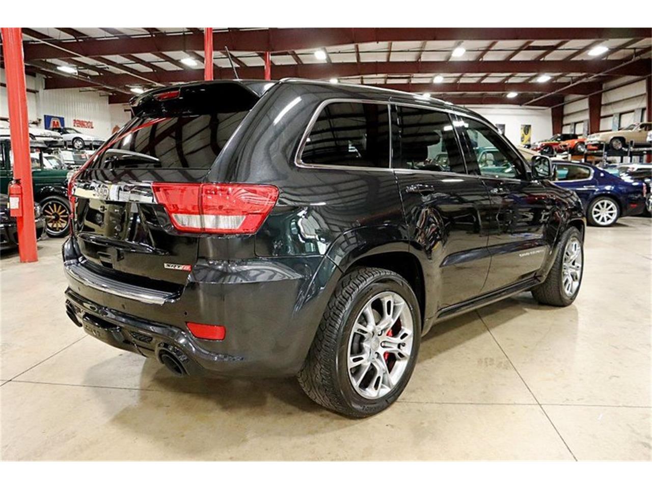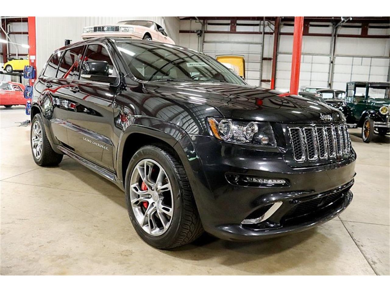 2012 Jeep Grand Cherokee SRT8.The exterior is finished in Brilliant Black and the truck rides on 20inch wheels wrapped in Yokohama tires.