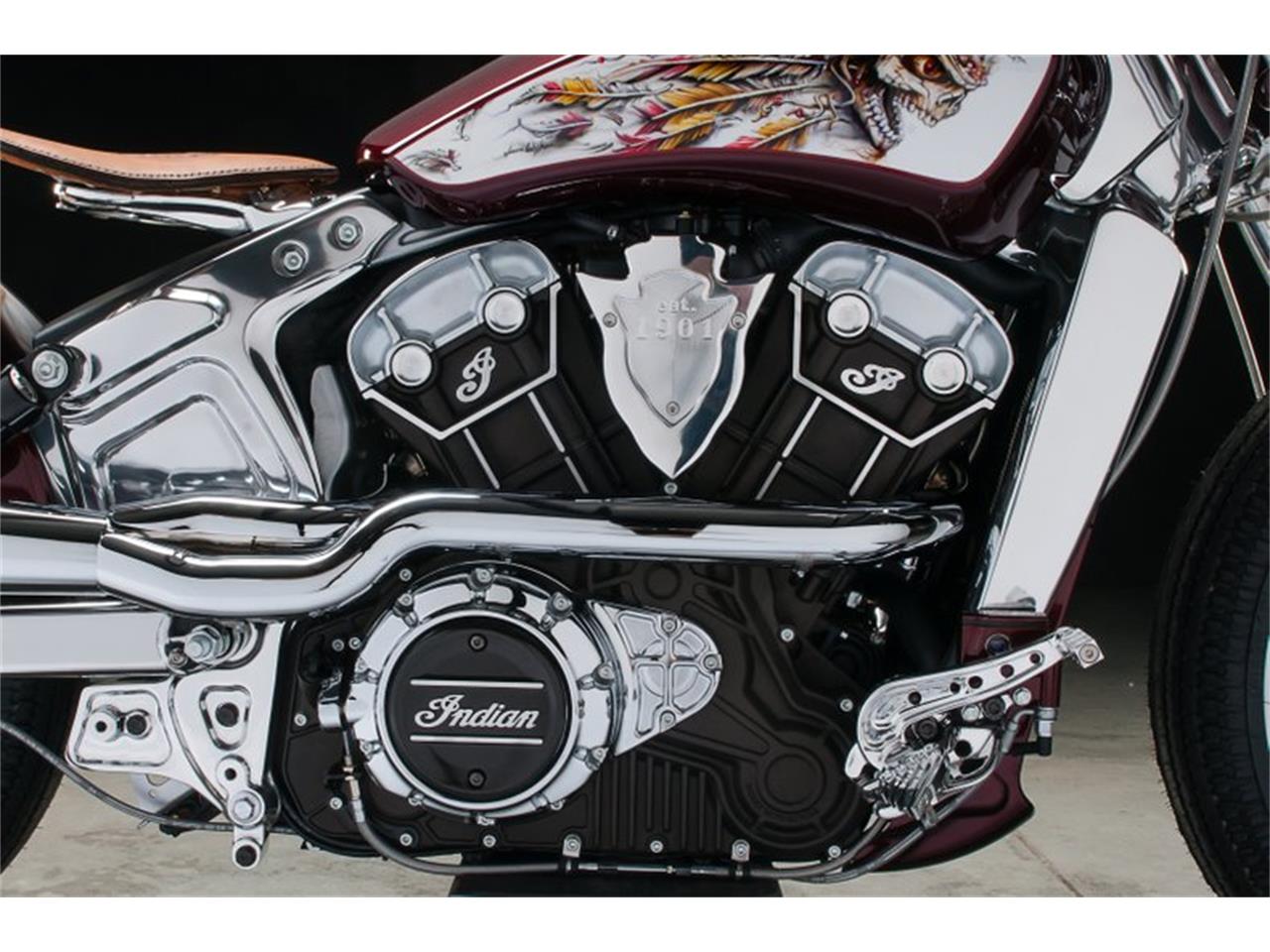 This is a very special offering of a 1 of a kind, custom built 2016 Indian Scout. The velocity stack coming from the tank is a sign of some very creative engineering, with the help of Z's Customs from Savage, MN, that meets to the down draft intake system.
