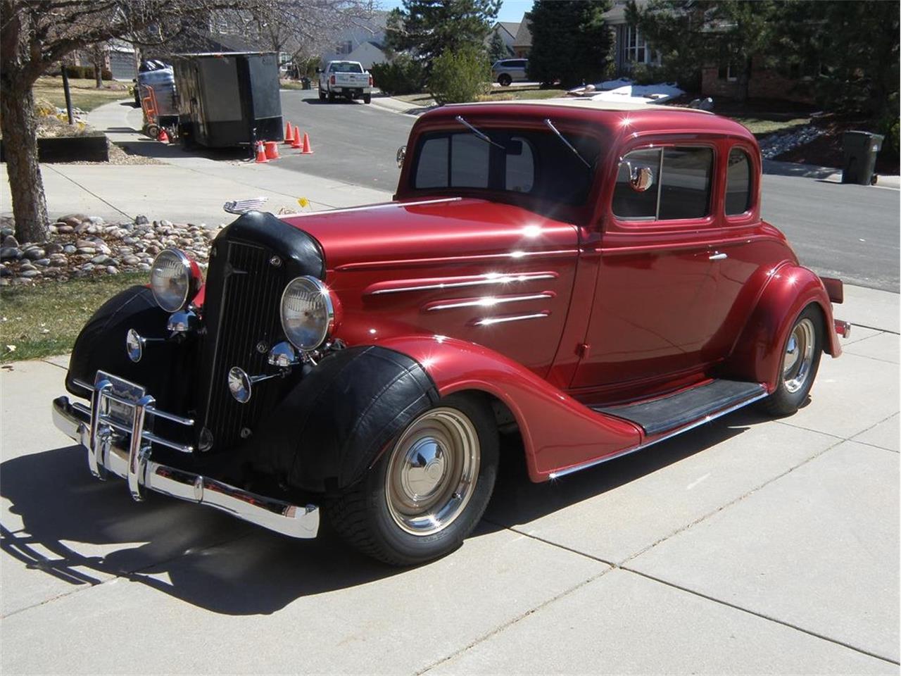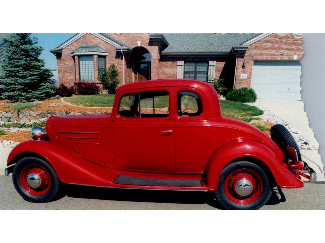 1934-1935 Chevy Master Coupe All steel original body ZZ-4 Chevrolet CI 350 HP small block engine 700 R4 automatic transmission Fat Man Mustang Stag II front suspension Griffin aluminum radiator Flaming River steering Currie 9" rear end Rock Valley aluminum fuel tank Holly 570 cfm carburator Corvette master cylinder Air Tique heating and air conditioning HPC coated custom dual exhaust Flowmaster mufflers Auto Meter guages and clock Custom interior with bench seat Interior retro moldings & steering wheel Charcoal tinted glass Passenger windshield wiper & tail light Pioneer AM/FM CD changer Seco-Larm system Custom Jewelcoat red tint paint Wardlow custom black bra Powder coated rims Continental spare tire & cover Professionally built in 2003 4150 miles