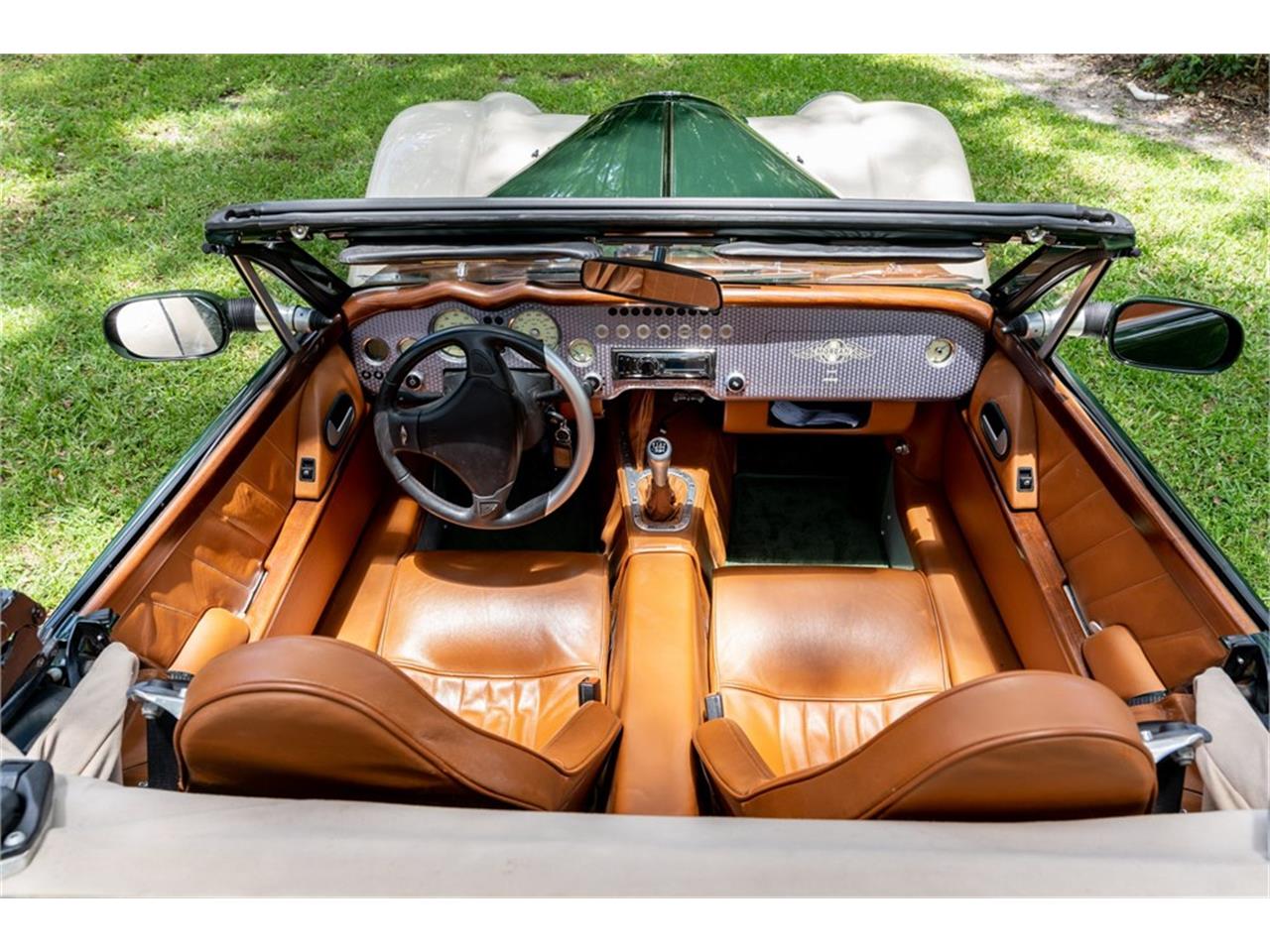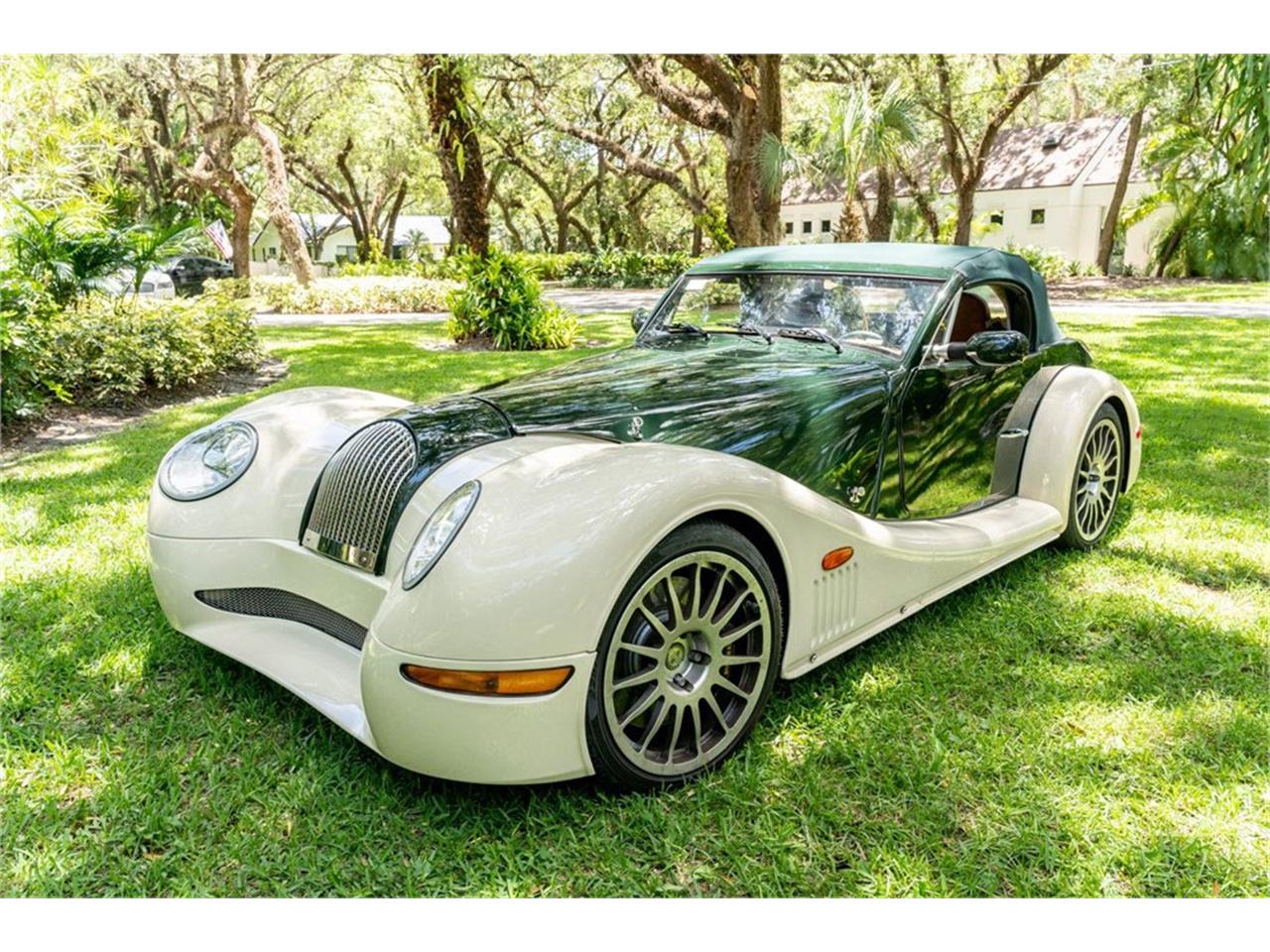 This 2005 Morgan Aero 8 was originally sold at the Chariots of Palm Beach dealership in Florida in Septemberof 2005 and has aluminum bodywork finished in Connaught Green and Harvest Moon Beige with a green fabric roof over a Yarwood Light Tan leather interior