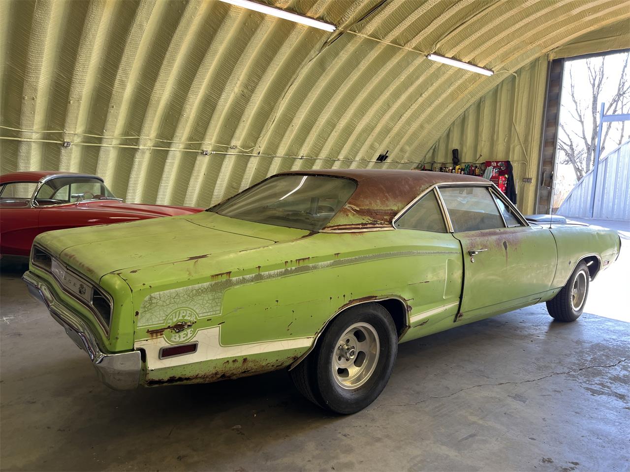 V Code, 440 6 Pack, 4 speed car Originally FJ5 Sublime with white interior, vinyl top, C stripe Optioned with N96 Airgrabber, Tach, Bucket seats car originally The car is very original, showing 75% original paint, original stripes, original interior- there is no doubt what this car was born as Very complete car- All of the 1970 Coronet/Bee specific items are there and in good shape Complete interior with original seats, complete dash, and nice 4 speed console
