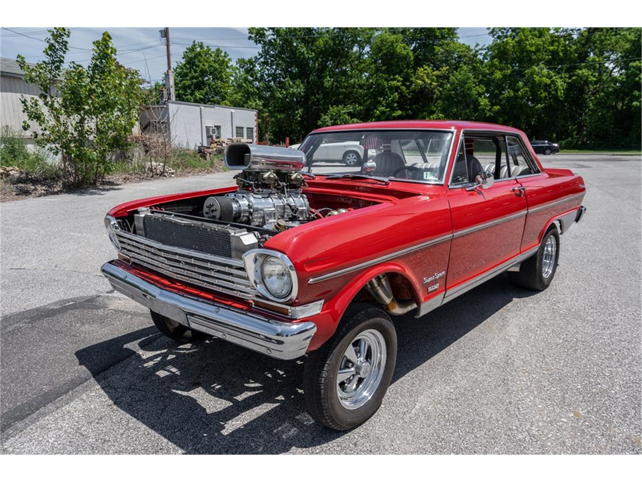 This 1963 Chevrolet Nova two-door hardtop gasser is powered by a dual-quad, supercharged 502ci big-block Chevrolet V8 engine backed by a TCI TH400 automatic transmission