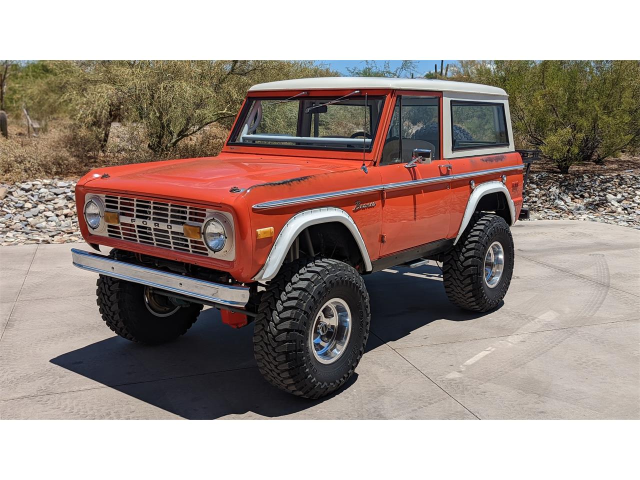 FOR SALE BY OWNER!! ORIGNAL PAINT ARIZONA DRY DESERT PATINA SURVIVOR FINNISHED IN THE DESIRABLE AND SUPER RARE COLOR CALYPSO CORAL! 3 OWNER BRONCO HAS ALWAYS RESIDED IN ARIZONA SINCE NEW BEEN GARAGE KEPT AND WELL PRESERVED! AMAZING PATINA AND RUST FREE CHASSIS AND BODY THEY ARE HARD TO FIND IN THIS CONDITION!! FUEL INJECTED 302 CRATE ENGINE WITH C4 AUTOMATIC TRANSMISSION RUNS AND DRIVES VERY STRAIGHT AND RELIABLE! THE LIFT AND SUSPENSION WAS BUILT AND ENGINEERED TO BE ABSOLUTELY ROCK SOLID WITH INCREDIBLE OFFROAD PERFORAMNCE AND STREET DRIVEABLILTY AND STABILITY! BRAND NEW TIRES AND WHEELS, FULLY SERVICED, TURN KEY AND READY TO GO! UPGRADES INCLUDE, 4 WHEEL DISC BRAKES WITH HYDROBOOST, BRAND NEW SHOCKS, AUXILLARY AIR COMPRESSOR, LOCKING DIFFERENTIALS, 320 HP CRATE ENGINE WITH HEADERS AND DUAL EXHAUST! I HAVE 2 OF THESE BRONCOS BUILT BY THE SAME OWNER YEARS AGO I HAVE DECIDED TO KEEP MY GREEN ONE AND SELL THE ORANGE ONE AS I ALREADY HAVE ORANGE TRUCKS IN MY COLLECTION