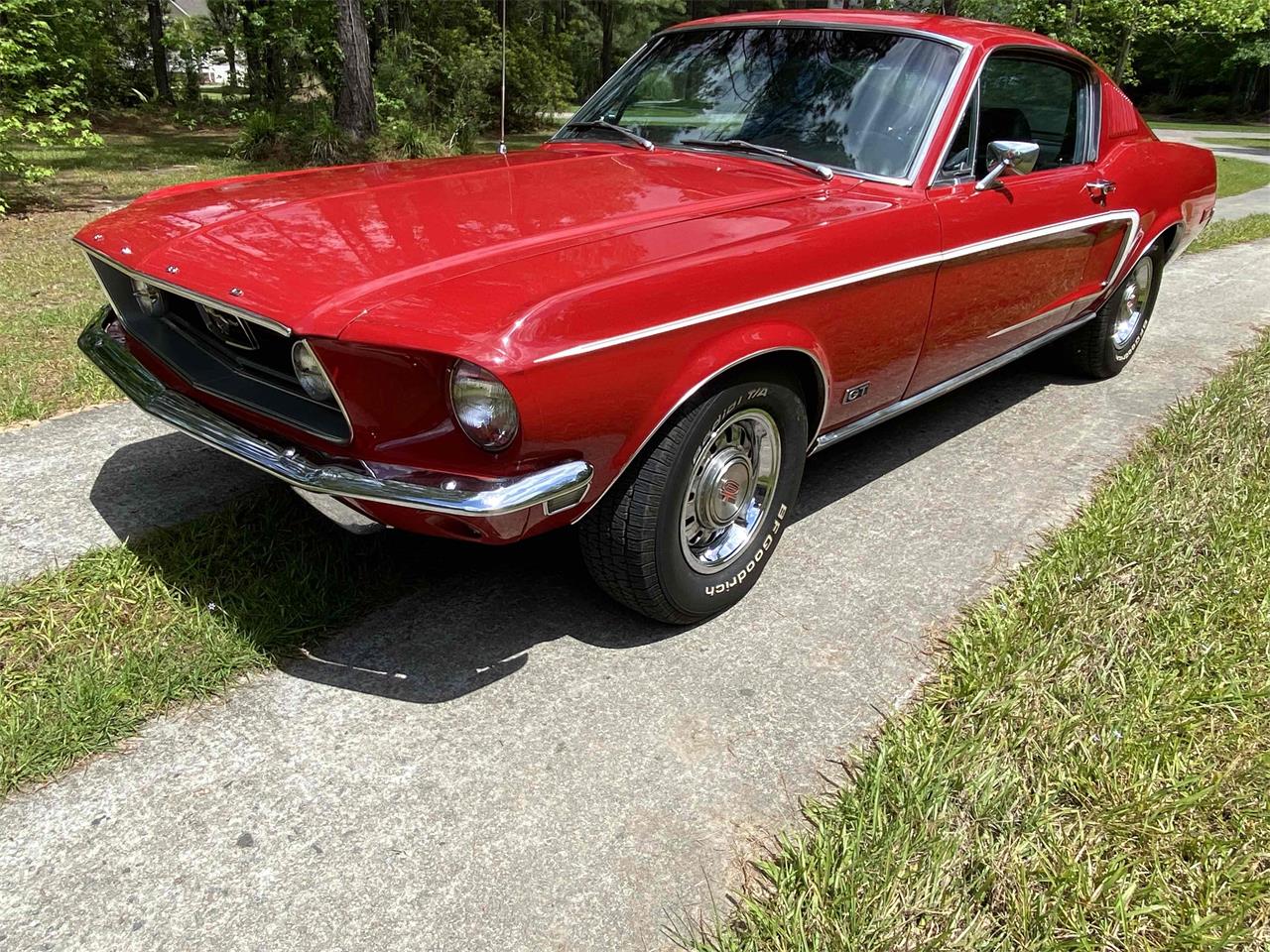 The one you have been waiting to see! LOADED 1968 Ford Mustang Fastback GT 390 S code! She is offered with a complete list of options to include factory air conditioning, power steering, power disk brakes (front disk rear drum), the GT group options, the visibility option, fold down rear seat option, the deluxe interior decor group option, tinted glass option, tachometer with trip odometer option, and even the very rare head rest seat option