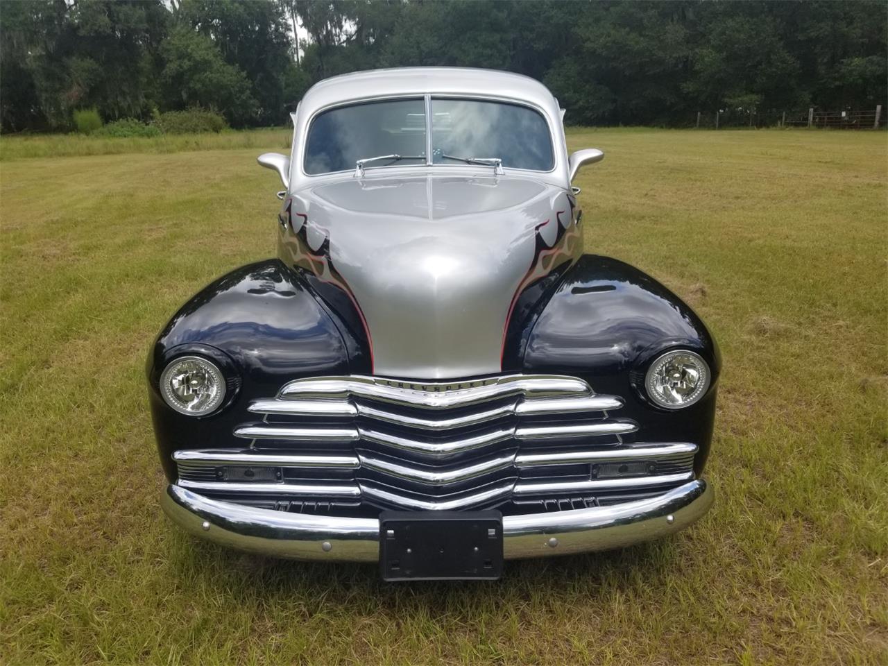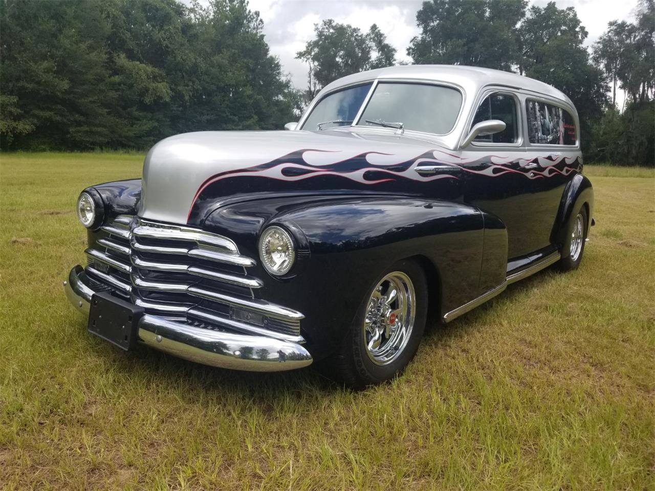 1947 Chevy Fleet Master Restomod Sedan Delivery -ZZ4 350ci V8 engine -405 torque 375 horse power -Aluminum L98 Lt1 Heads -350turbo trans with shift kit and Lokar shifter -Edelbrock carburetor with working custom air intake scoop -Walker custom radiator -All steel steel braided line and hoses -Custom chrome reservoir for all fluids -Vintage A/C with heat system r34 / "Stays Super cold in Florida heat!" -Power steering -Late model Chevy power brakes -Custom modern front suspension -Chevy late model rear end -Custom black leather interior -Caddy front power seats -Tilt steering wheel -Custom door panels -Custom headliner -Custom back delivery area -Custom VDO Gauges -Custom DVD with screen player in rear roof -Custom headphone set up wireless in rear -Custom Power Acoustik radio with back up exterior cameras -Kenwood power amplifier -All manuals and remotes for devices in the vehicle -Manuals for front suspension -205/75/15 wheels in front -235/70/15 wheels in rear -Custom chrome wheels The car it truly beautiful and amazing to drive