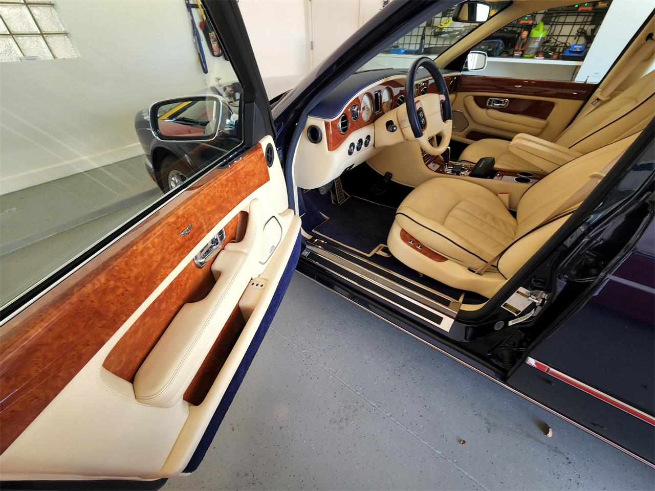 2009 BENTLEY ARNAGE RED LABEL LONG WHEEL BASE HIGHLIGHTED OPTIONS: Main hide interior - Magnolia Two-tone top roll Embroidered Marque emblems Lambs wool rugs (in addition to carpet over mats) Madrona veneer Veneered picnic tables 2 veneer cocktail compartments to lower front seat backs DVD system in rear compartments with screens to front headrests Naim premium audio TV reception iPod interface Drilled aluminum foot pedals Electronically operated rear blind Flying 'B' radiator mascot Radiator shell - Chrome with bright stainless steel Matrix style grille See documents included in photo carousel for more information