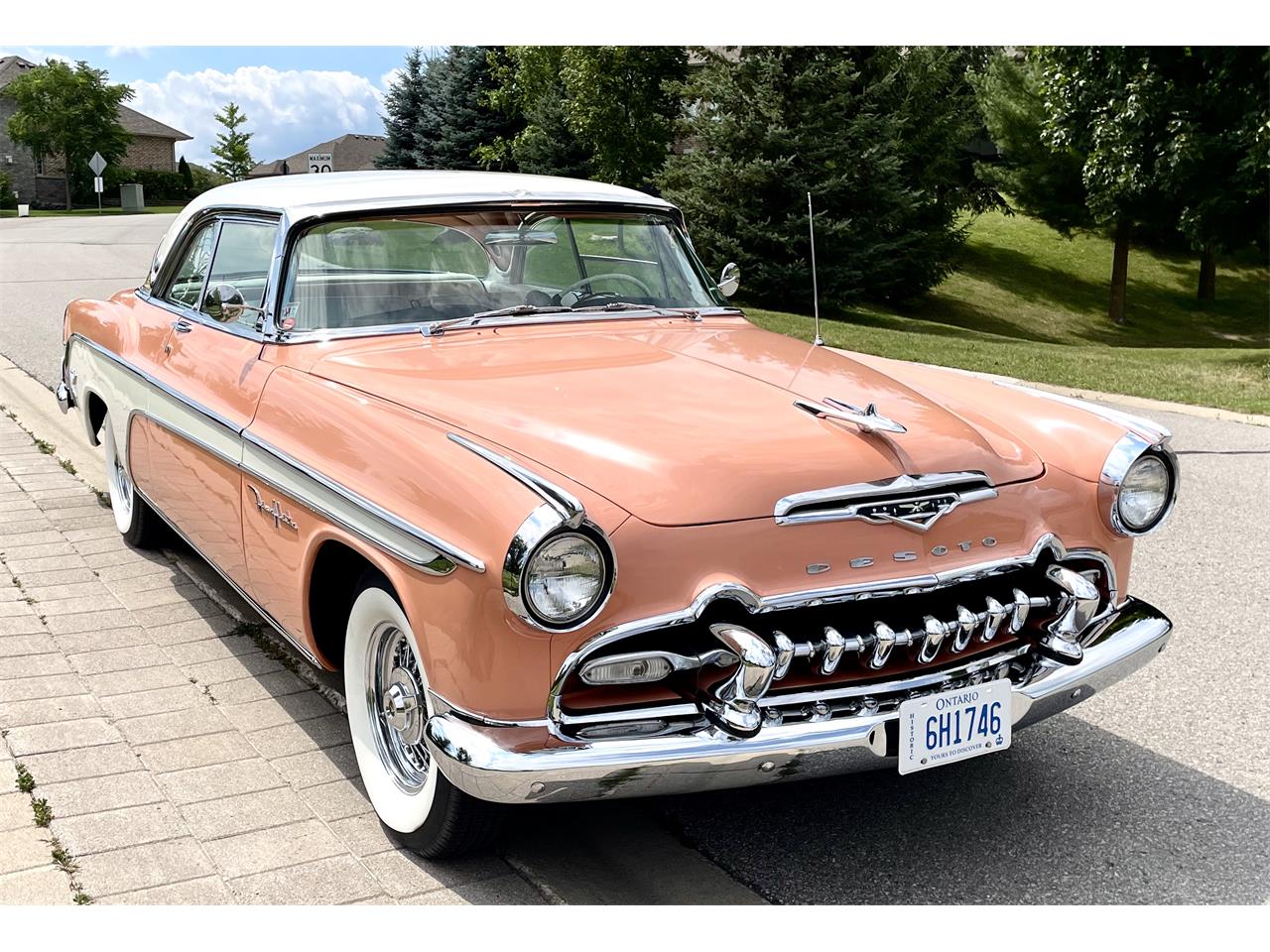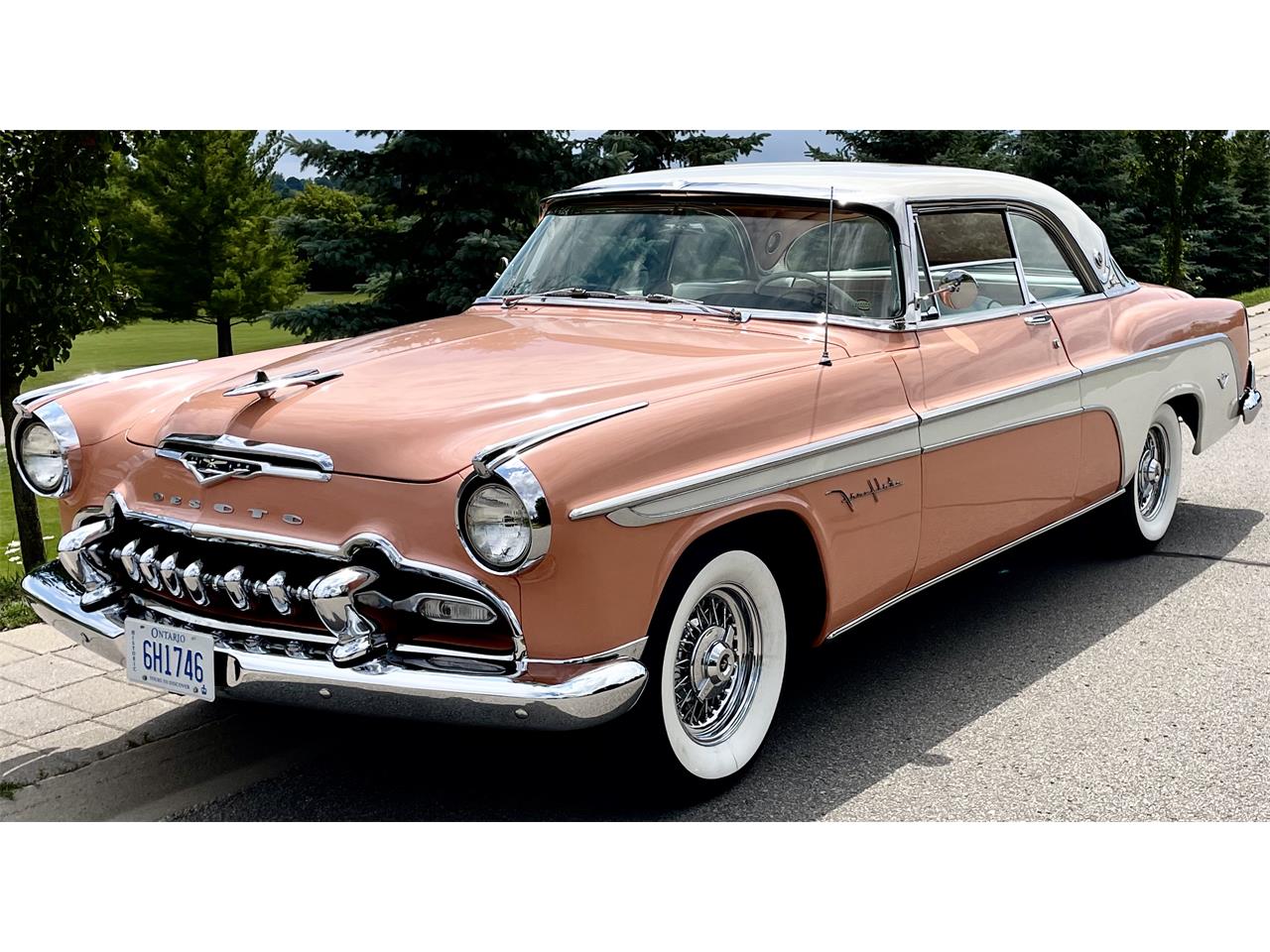 1955 DeSoto Fireflite Sportsman is finished in classic one year only Emberglow and Surf White two tone