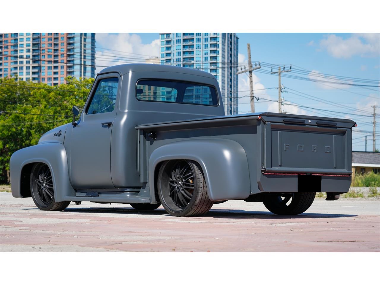 This F100 has undergone a meticulous Frame-Off Build with lots of upgrades added during the process! Driving this F100 is nothing short of a thrill, and it's also loaded with Air Conditioning, Power Rack and Pinion Steering, and 4-Wheel Power Disc Brakes with Wilwood 4-Piston Front Calipers, 4-Piston Rear Calipers
