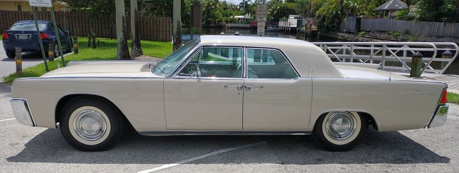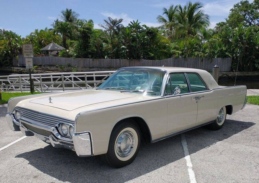 1961 Lincoln Continental Sedan. Factory Air Conditioning, the power front bench seat, and Factory Tinted Glass. This is an incredibly well preserved and maintained example. Recent services and update include: recent full Waldron Exhaust, Rebuilt Transmission, comprehensive servicing, and a full bare metal repaint to high standards. The interior is very clean and well presented.