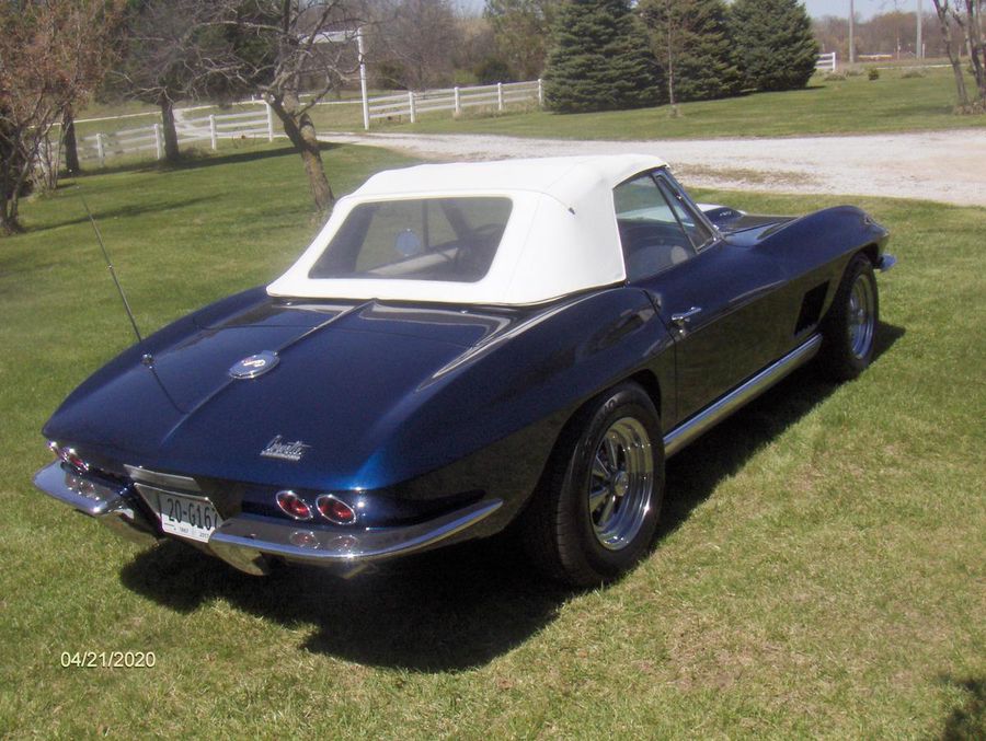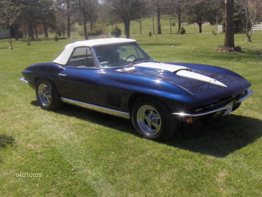 1967 Chevrolet Corvette Roadster, Restored,Rebuilt Engine, 427-390 HP, 4 Speed, Positraction, 4 Wheel Disc Brakes, New Clutch, New Leather Interior, New Carpet, New Cragars, Hankook Tires, Shocks, Exhausts, New Lynndale Blue, Auxillary Hardtop, White Soft Top, Price $76,900