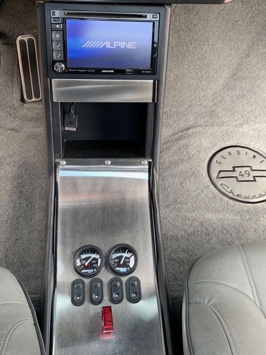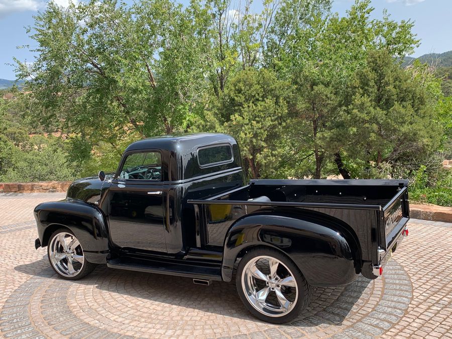 Head turning frame-off restored 1949 Chevy 3100 Custom P/U with fresh 350 motor! Stunning glossy jet black paint, air-ride, lowered roof door latches upgraded, engine, tranny and brakes all inspected and serviced