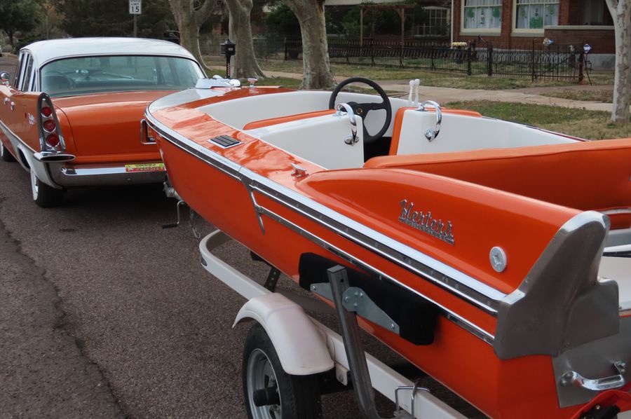 One-of-a-kind original 1957 De Soto, matching big Finn boat and motor with an exceptional total price for the unique pairing