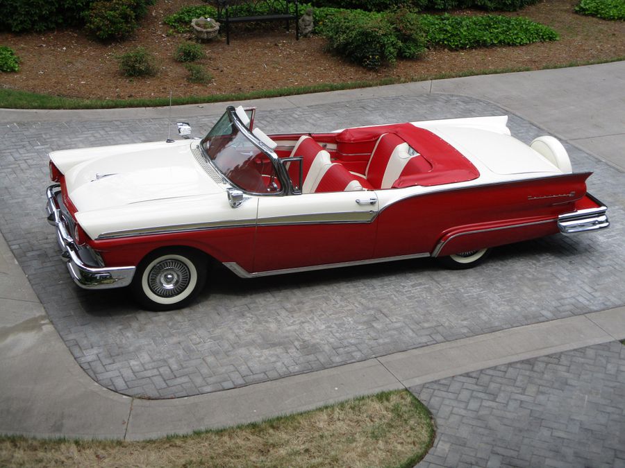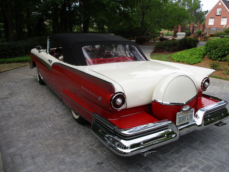 1957 FORD FAIRLANE 500 SUNLINER CONVERTIBLE Finished in Stunning Flame Red (V) over Colonial White (E) with Black Hartz Canvas Convertible Top and Beautiful Red and White Interior