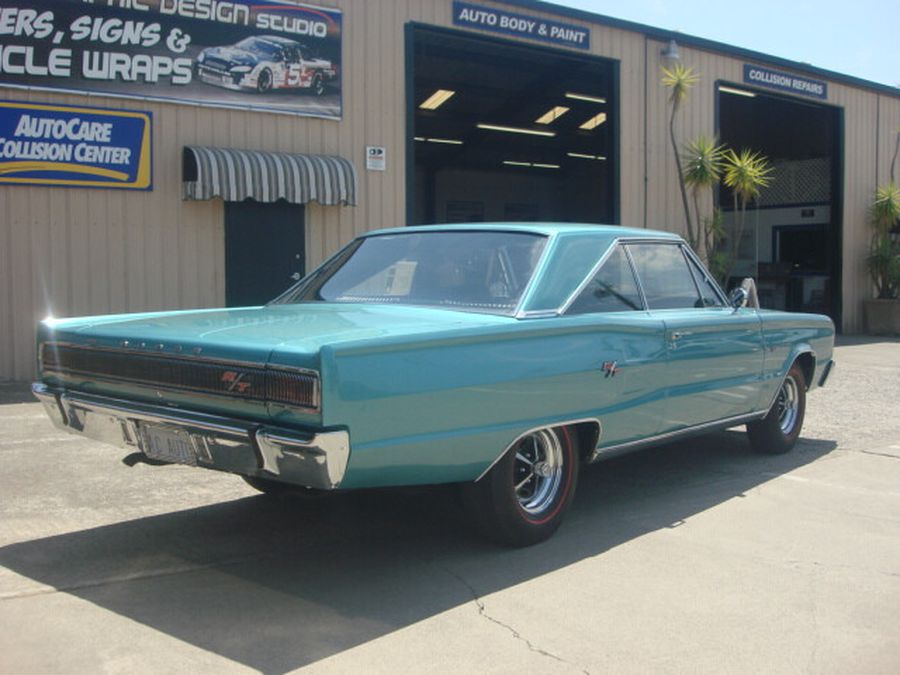 1967 Dodge R/T · 426 CU IN Hemi/426 HP · 2x4 BBL Carter Carburetor · 4 Speed Manual Transmission · Dana 60-3:54 Ratio Sure Grip · Power Disc Brakes-Front · Ralley Suspension · Chrome Magnum 500 Wheels · 7;75x14 Red Streak Tires · KK1 Paint · Bucket Seats & Console · Music Master Radio · Console Mounted Tack · Variable Speed Wipers Only 119 4 Speed Hemi R/T Hard tops were built and this believed to be 1 of only 2 finished in the Light Turquoise Metallic