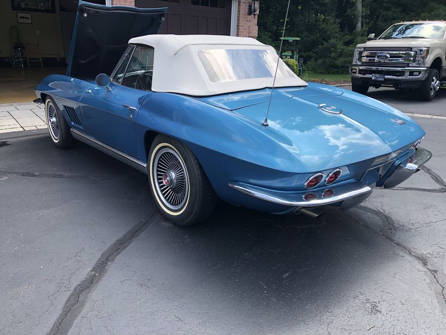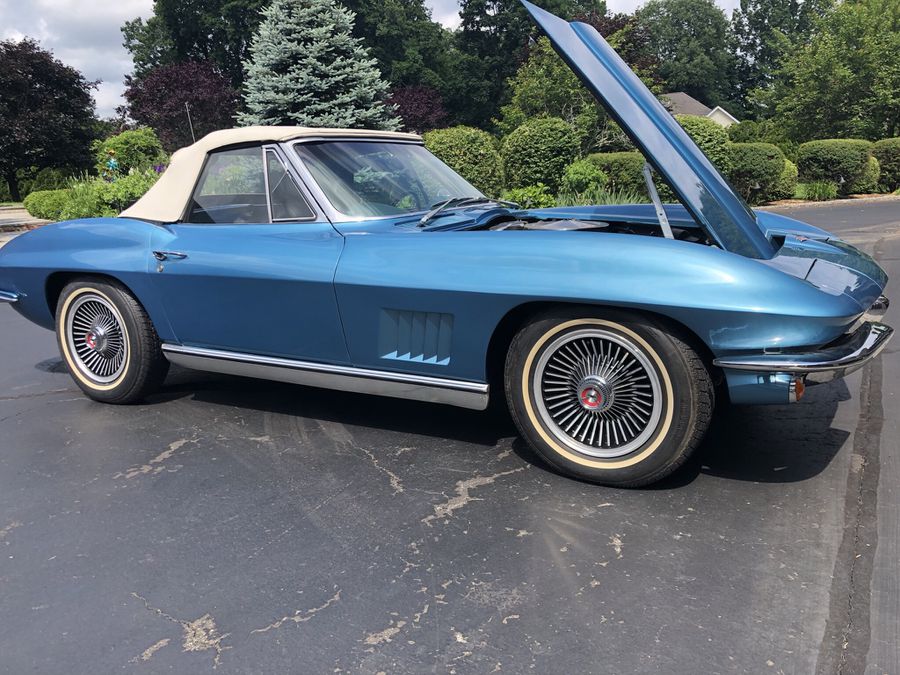 1967 Chevrolet Corvette Stingray, Marina Blue with Blue Interior and White Soft Top 327/300 hp with matching numbers and 4 speed transmission