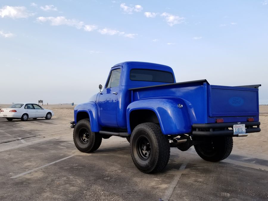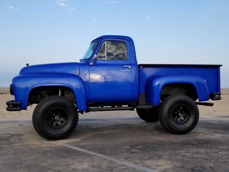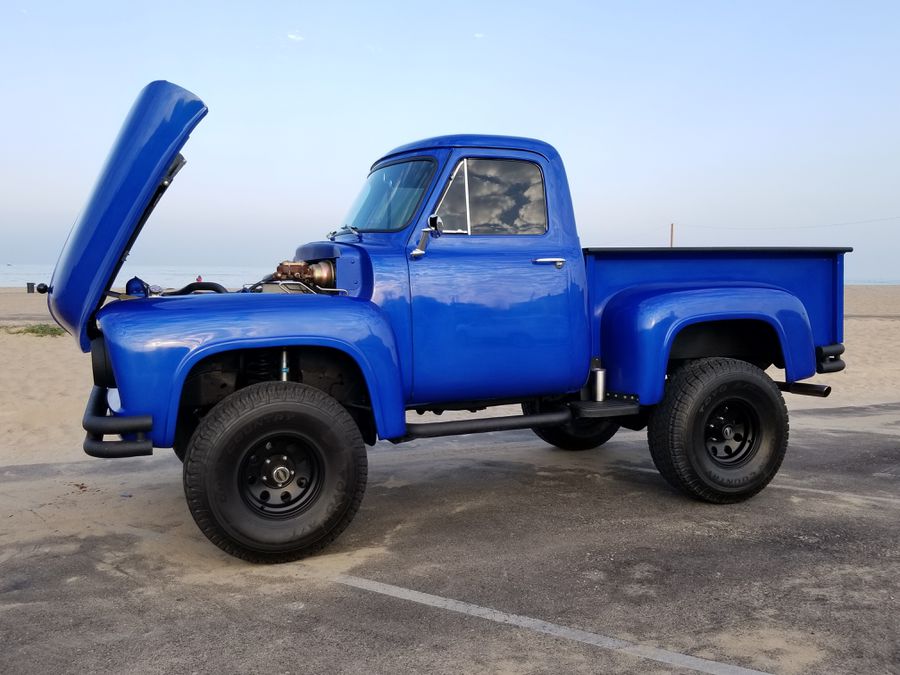 This is a one of a kind 1955 ford truck body mated to a 1982 bronco chasis