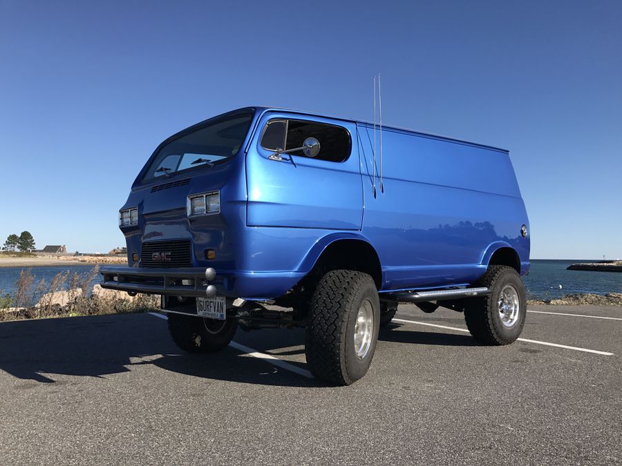 1966 Chevy G 20 van, super custom surf van!Exterior features loads of quality mods, gull wing doors, shaved clean, Cadillac tail lights, power antenna, side steps and tube bumpers