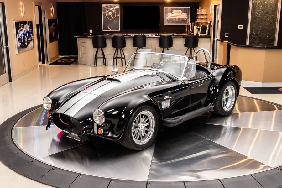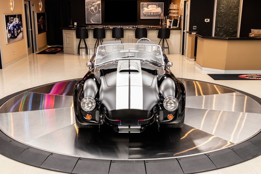 Check out this gorgeous Superformance 1965 Shelby Cobra! This Cobra is sporting a glossy Black Paint finish, Painted Silver Stripes, Black Interior, 17'' Knock-Off Style Wheels, Side Pipes, Hood Scoop, Removable Tonneau Cover, Driver Roll Bar, along with Polished Components all around! Under the hood sits a 427SR V8 Crate Engine with Roush Racing Aluminum Cylinder Heads, an Edelbrock Performer RPM Aluminum Intake Manifold, and a Holley 4-Barrel Carburetor sitting on top! The engine bay of this Cobra looks incredible and the multitude of polished components installed are sure to turn heads at your local car show
