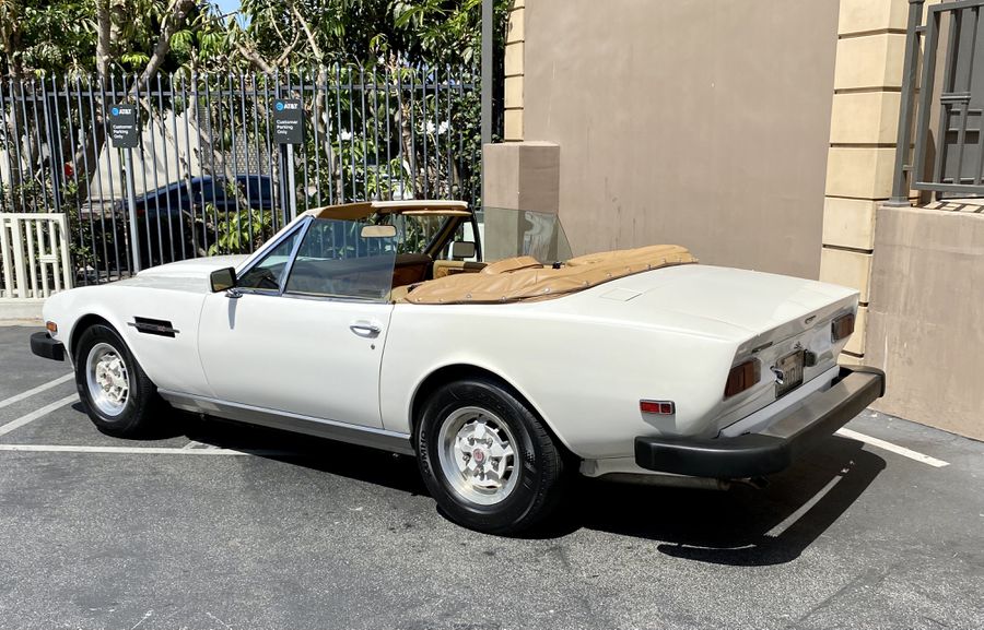 1982 Aston Martin V8 Volante Dover White with Tan Leather Interior and Brown Piping, Brown Wilton Wool Carpeting and Tan Everflex Convertible Top, Fuel Injected, Automatic Transmission, 95,161 miles, two owners from new, California Car, and clear CARFAX