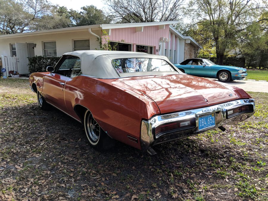 Buick 1972 Gran Sport, well-maintained GS350 convertible, 72645K original miles, owned & garaged 37 years, original exterior flame orange paint, trim and mechanics are presentable and serviceable, newer tires, owner’s manual, runs, drives great