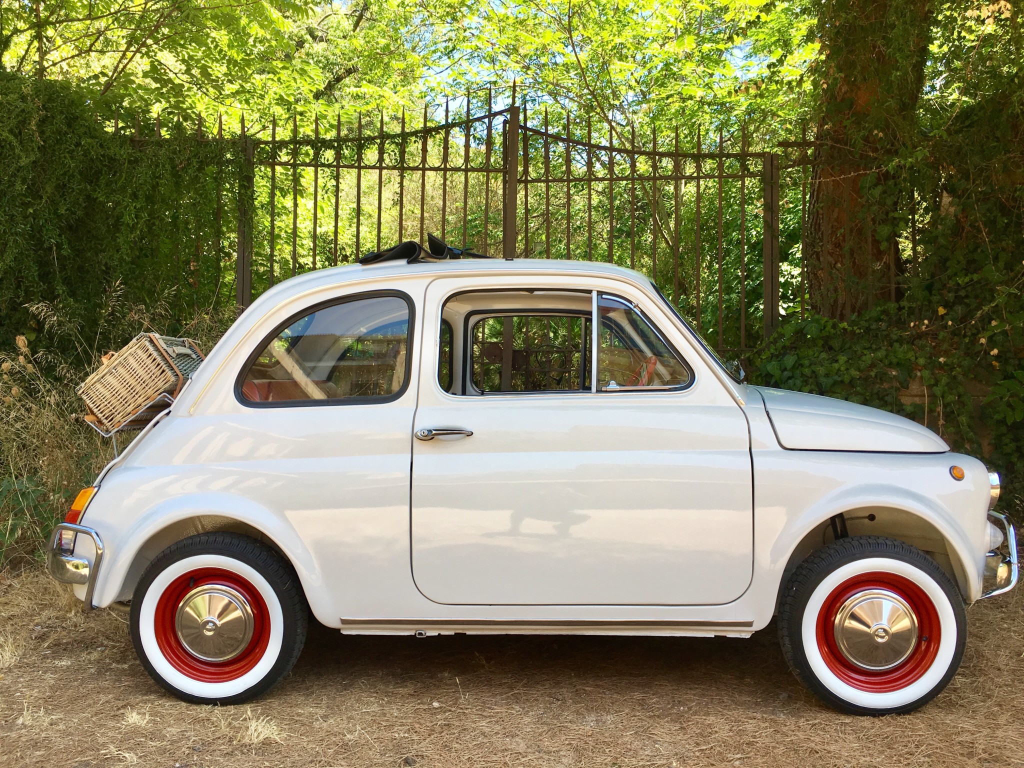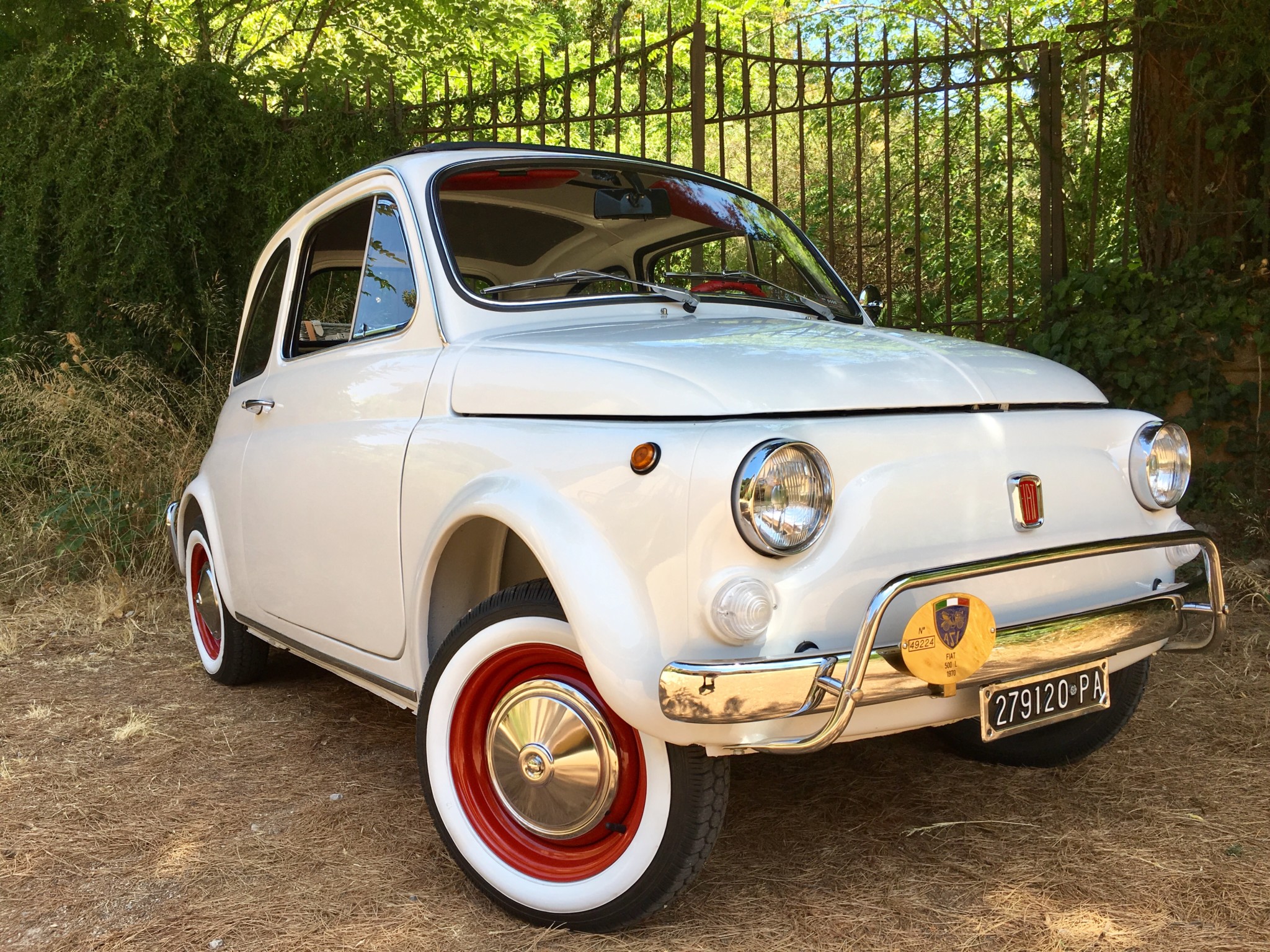 Tinted windows were installed with new gaskets, as were chrome and polished trim components. Features include a rear luggage rack, bumper overriders, and a black folding sunroof. Red steel wheels wear polished hubcaps and new tires with Atlas wide-whitewall inserts. An ASI “Gold” plate is mounted on the passenger’s side of the front bumper.