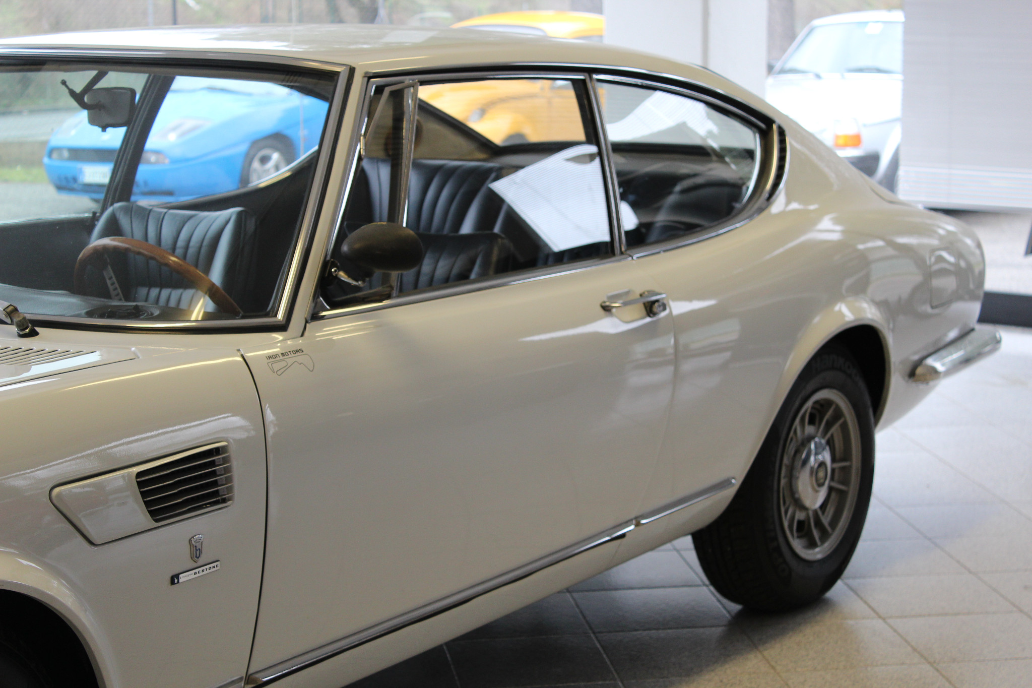 This Type 135AC has bolt-on 14″ Cromodora wheels with Fiat-logo center caps. Hankook Optimo tires are fitted. The odometer shows 23k kilometers (~14k miles), which the seller believes to be accurate.