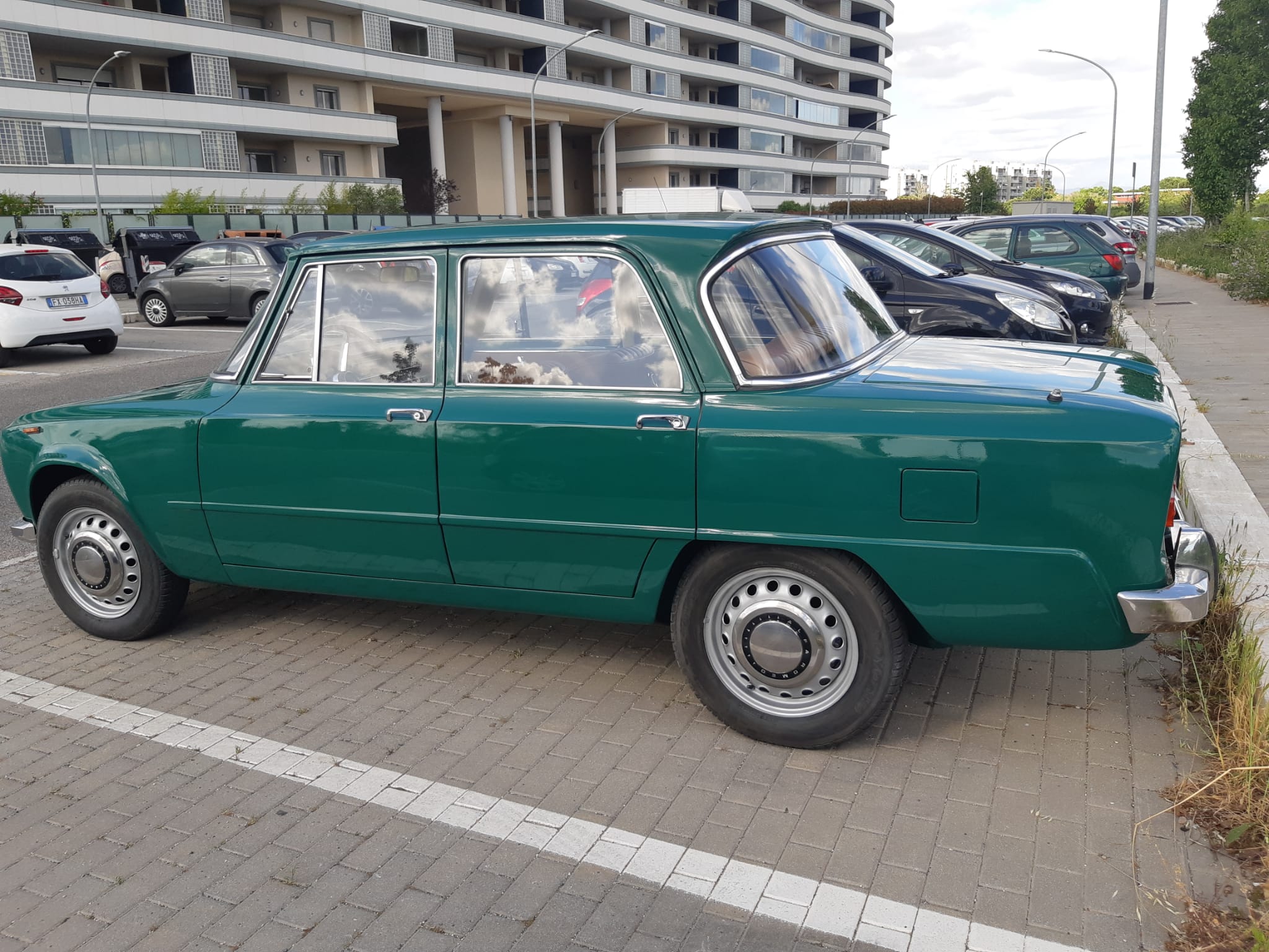 Painted 15″ steel wheels wear Alfa Romeo-branded hubcaps and Toyo 310 tires. Photos of the refurbishment in progress can be viewed in the gallery below.
