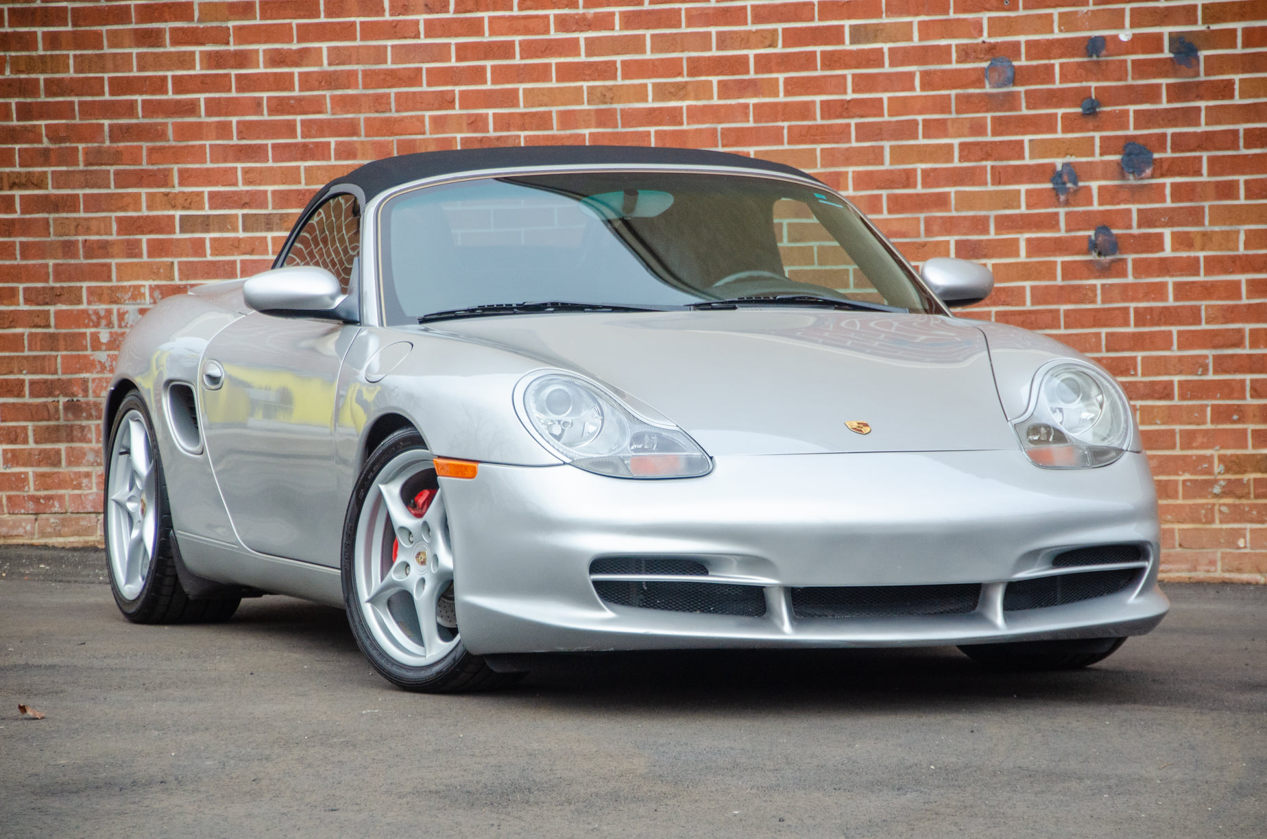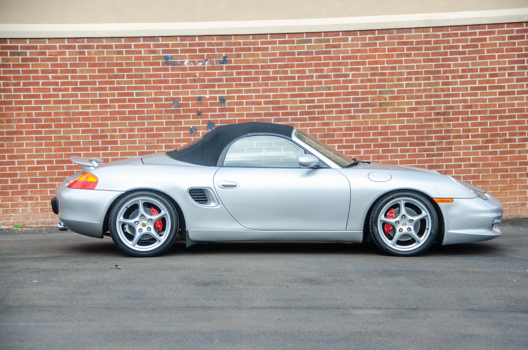 18″ Carrera-style alloy wheels feature Porsche-crest center caps and are mounted with staggered-width Sumitomo HTR ZIII tires. Stopping power is provided by red-finished calipers and cross-drilled rotors all around.