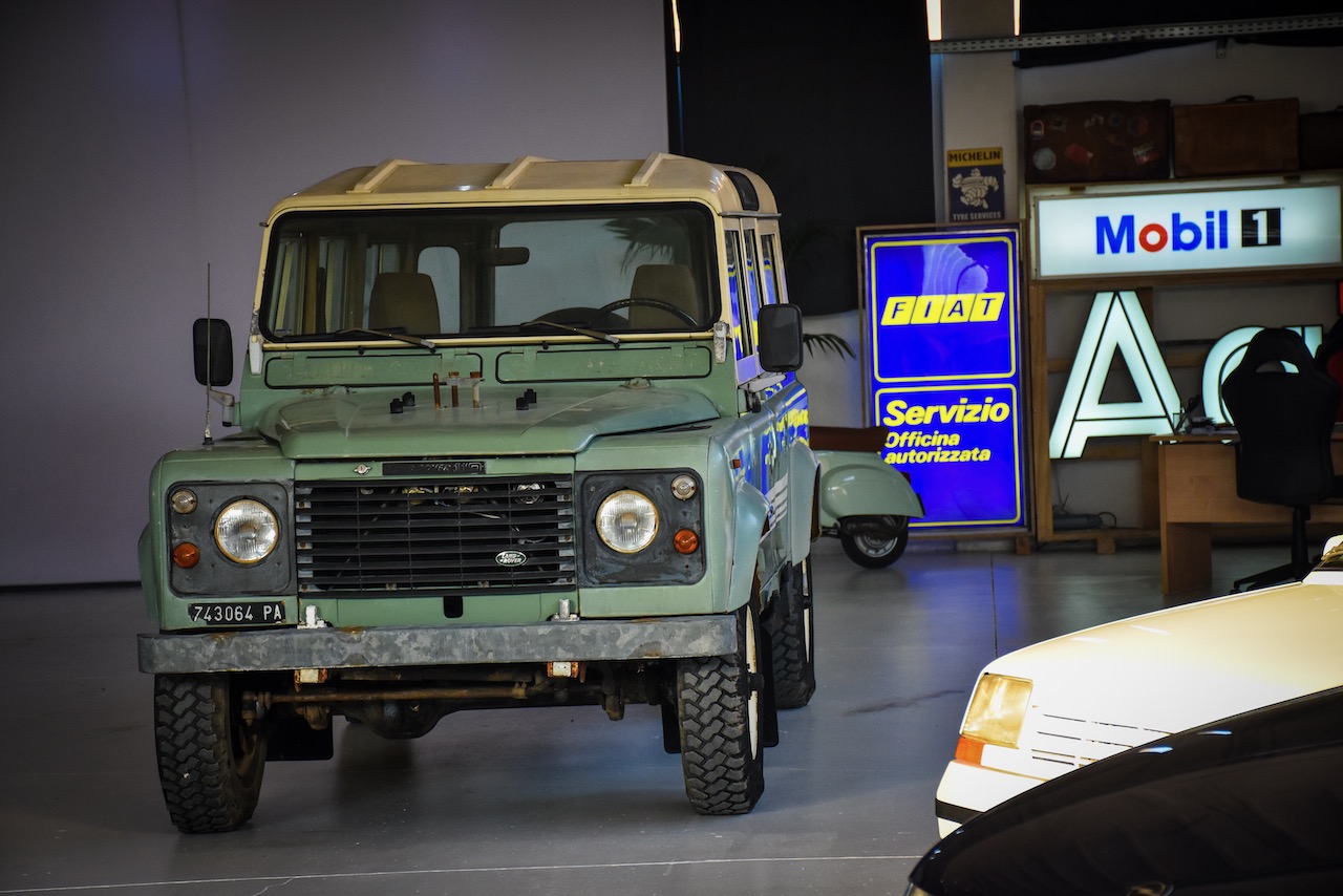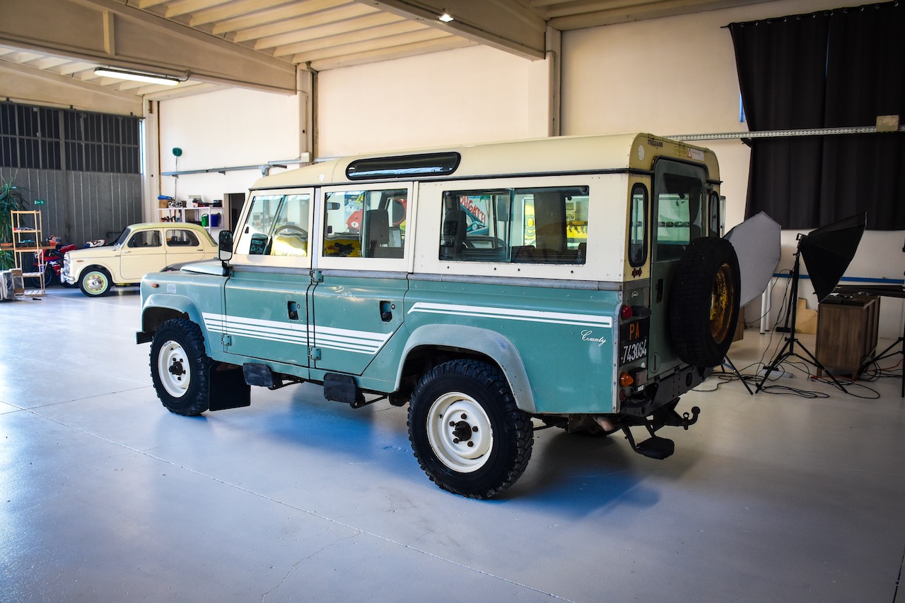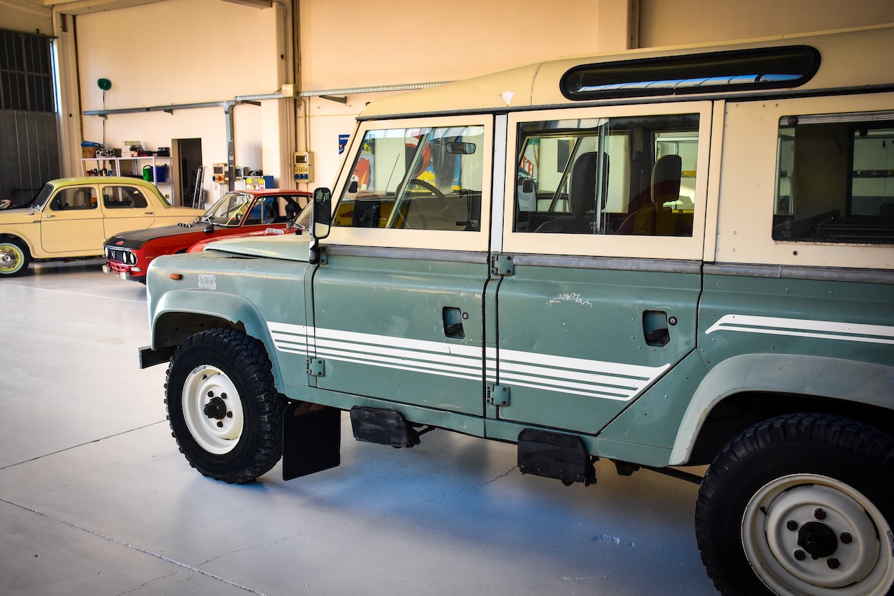 White-painted steel wheels are mounted with Michelin tires. Corrosion is noted on the spare wheel installed on the rear carrier.