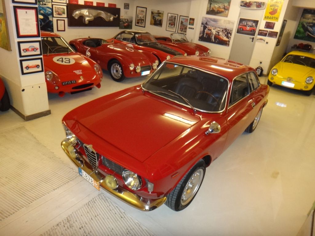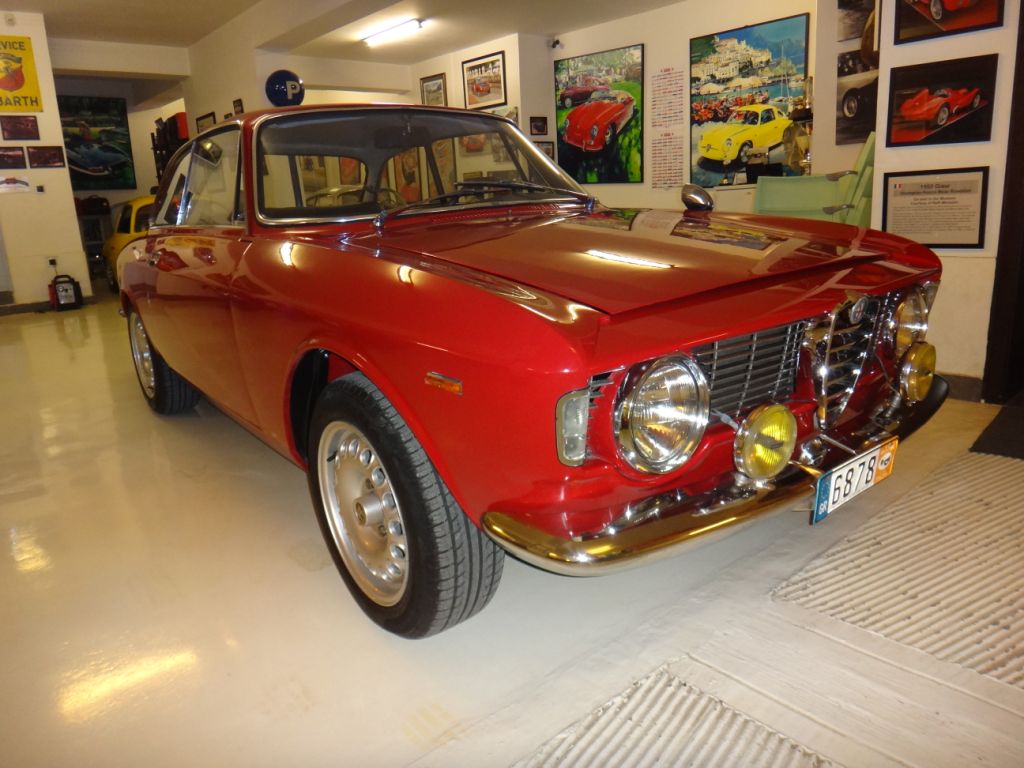 The interior shows very little wear since the restoration, and as many original details as possible have been preserved. A 1964 dated Nardi steering wheel with Alfa logo horn button is installed and is believed to have been fitted from new; the original Alfa wheel is included with the sale. Interior carpets, seat covers, and door cards were fully restored using correct parts sourced from Classic Alfa. The original headliner is still installed and is in very good condition with a nice aged patina.